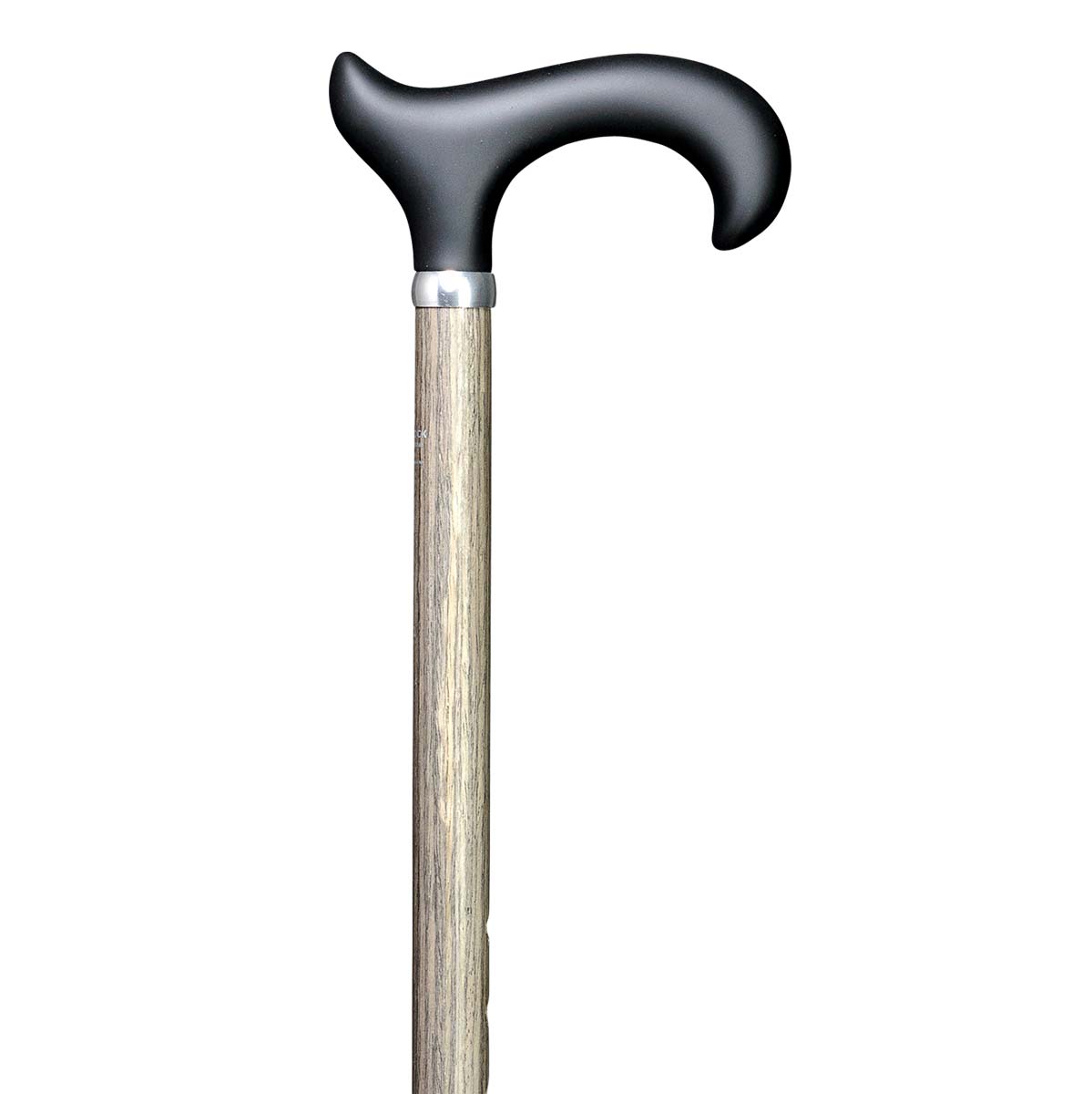 Der elegante Gehstock Mooreiche Ergonomic aus Aluminium ist ausgestattet mit ergonomischem DERBY-Griff aus Acetat mit samtiger Soft-Beschichtung und breiterem Griffrücken. Sein höhenverstellbarer Schuss ist im modernen grau-gemaserten Echtholzfurnier in Matt-Finsh gestaltet. Ein Chromring am oberen Schaftende rundet das Design des Handstockes ab.