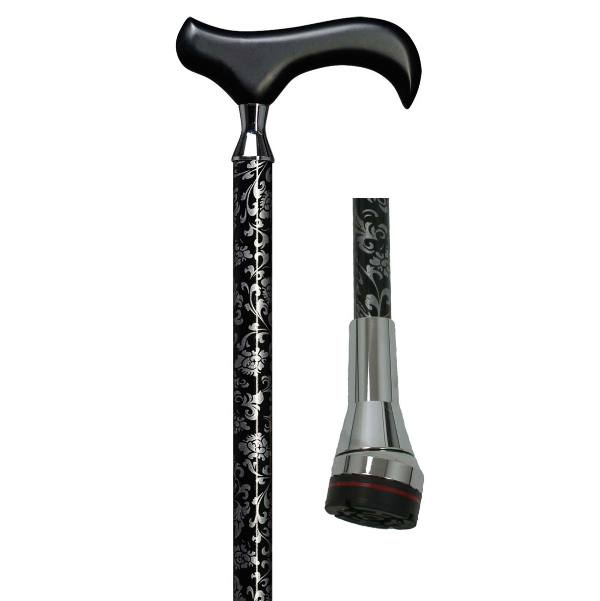 Als Highlight verfügt dieser elegante Gehstock für Damen über ein integriertes Dämpfungssystem und einen um 360° drehbaren Kreisel-Gummipuffer mit Verschleißanzeige am Fuß, der für maximale Auflagefläche sorgt und einen ständigen Kontakt zum Untergrund sichert. Da dieser Handstock aufgrund seines Aufbaus immer mit der ganzen Fläche auf den Boden trifft, erfolgt die Belastung gleichmäßig und der Handstock wird optimal genutzt. Egal ob Sie ihn gerade oder schräg aufsetzen: Der Gummipuffer findet mit der gesamten Fläche den Untergrund und das Dämpfungssystem sorgt für eine angenehme Entlastung der Hand- und Schultergelenke. Der Premium Handstock entlastet im Vergleich zu normalen Gehstöcken mit jedem Aufsetzen Ihre Gelenke und Muskeln effektiv, indem er Vibrationen und Schläge während der Benutzung minimiert.