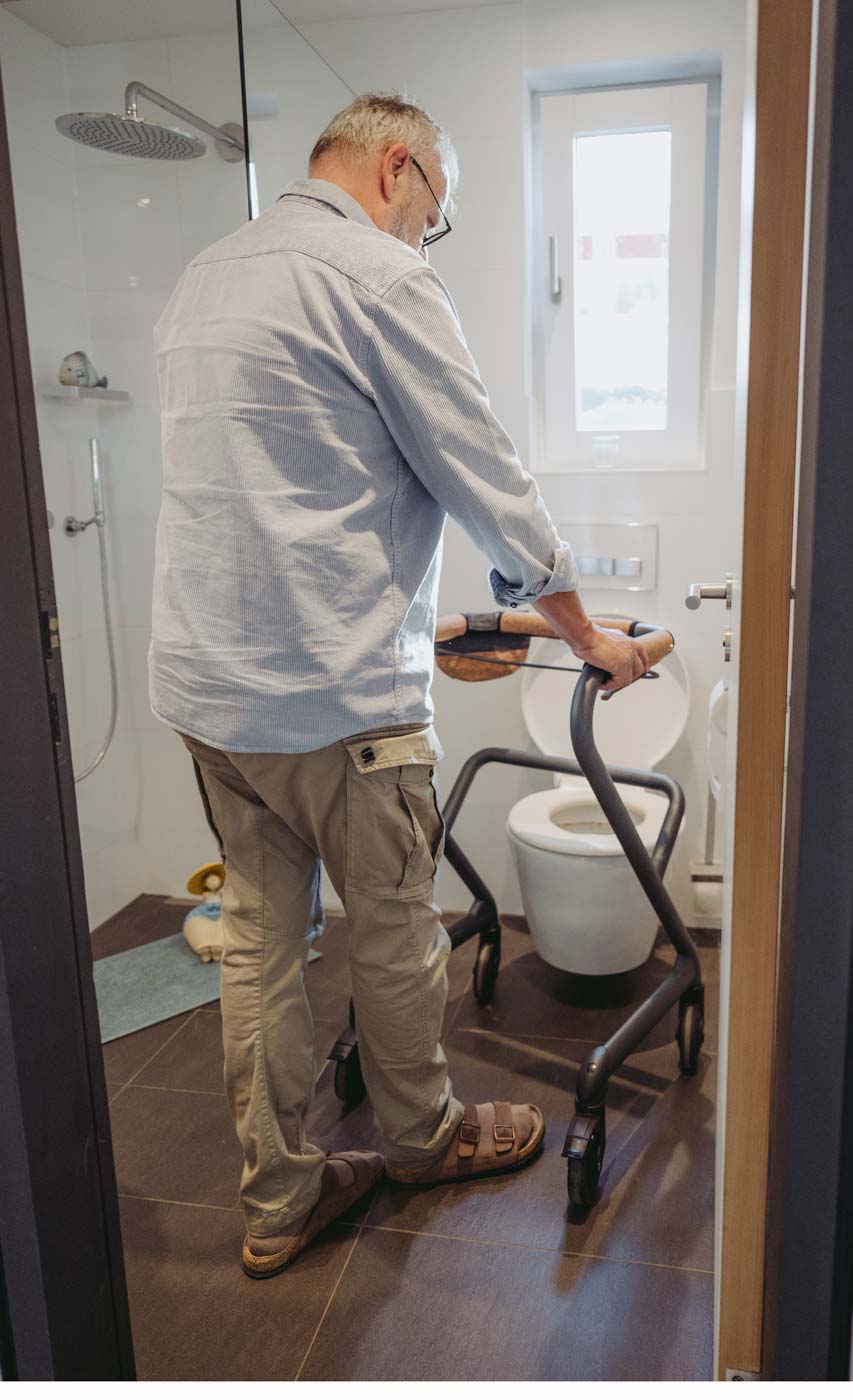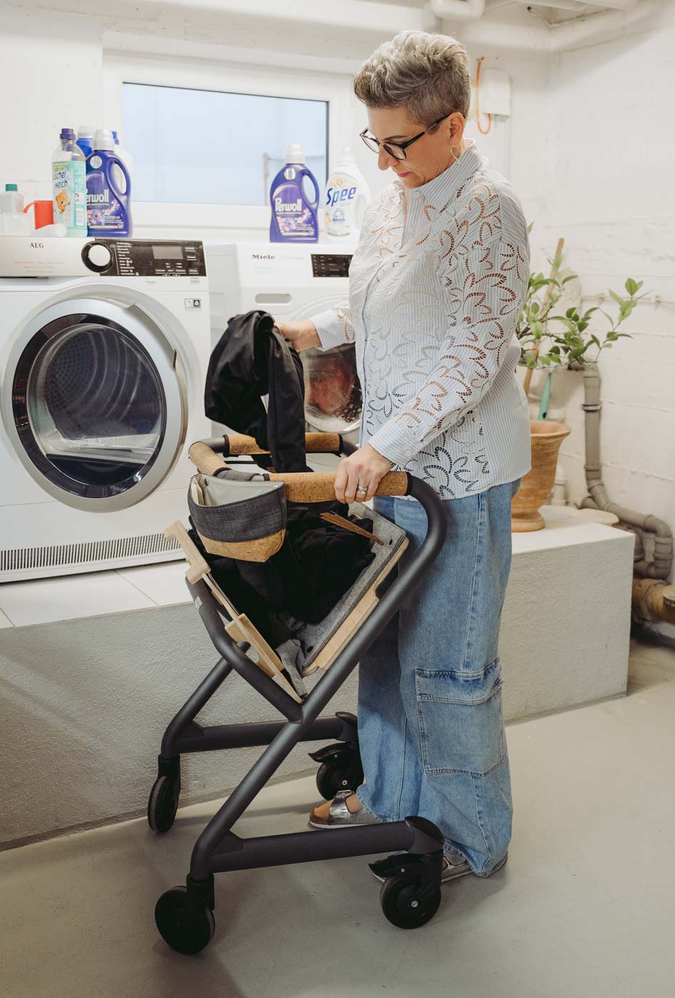 Ob als Gehhilfe, Servierwagen, fahrbare Haushaltshilfe zum Transportieren, Stuhl oder als Stützgestell während der Toilettenbenutzung. Der stabile Indoorrollator bietet ganztägige Unterstützung zum Erhalt Ihrer Selbstständigkeit.