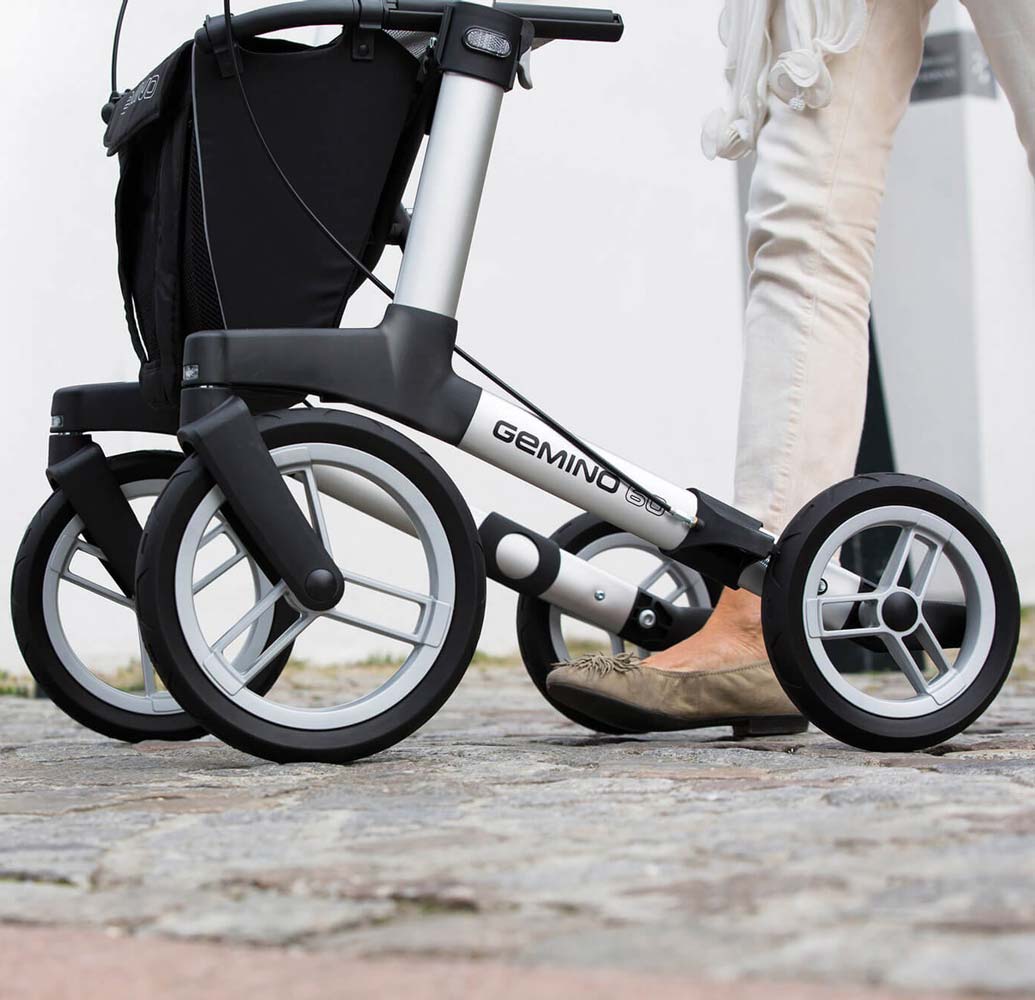 Der Arthritis Rollator Gemino 60 Walker mit Unterarmauflagen und großen Softrädern begleitet Sie zuverlässig und gibt Ihnen dank seiner stabilen Rahmenkonstruktion aus Aluminium mehr Stabilität, Komfort und Sicherheit beim Gehen. Nutzen Sie den Outdoor Rollator mit Unterarmauflagen draußen bei Spaziergängen und innerhalb der Wohnung. Die Brems- und Schiebegriffe sind vollständig in die Unterarmstützen integriert und für Sie einfach zu erreichen und leicht zu bedienen. Die Schiebegriffe mit Bremse lassen sich seitlich im Winkel verstellen. Für ein komfortables und sicheres Gehen auch auf unebenen Wegen!