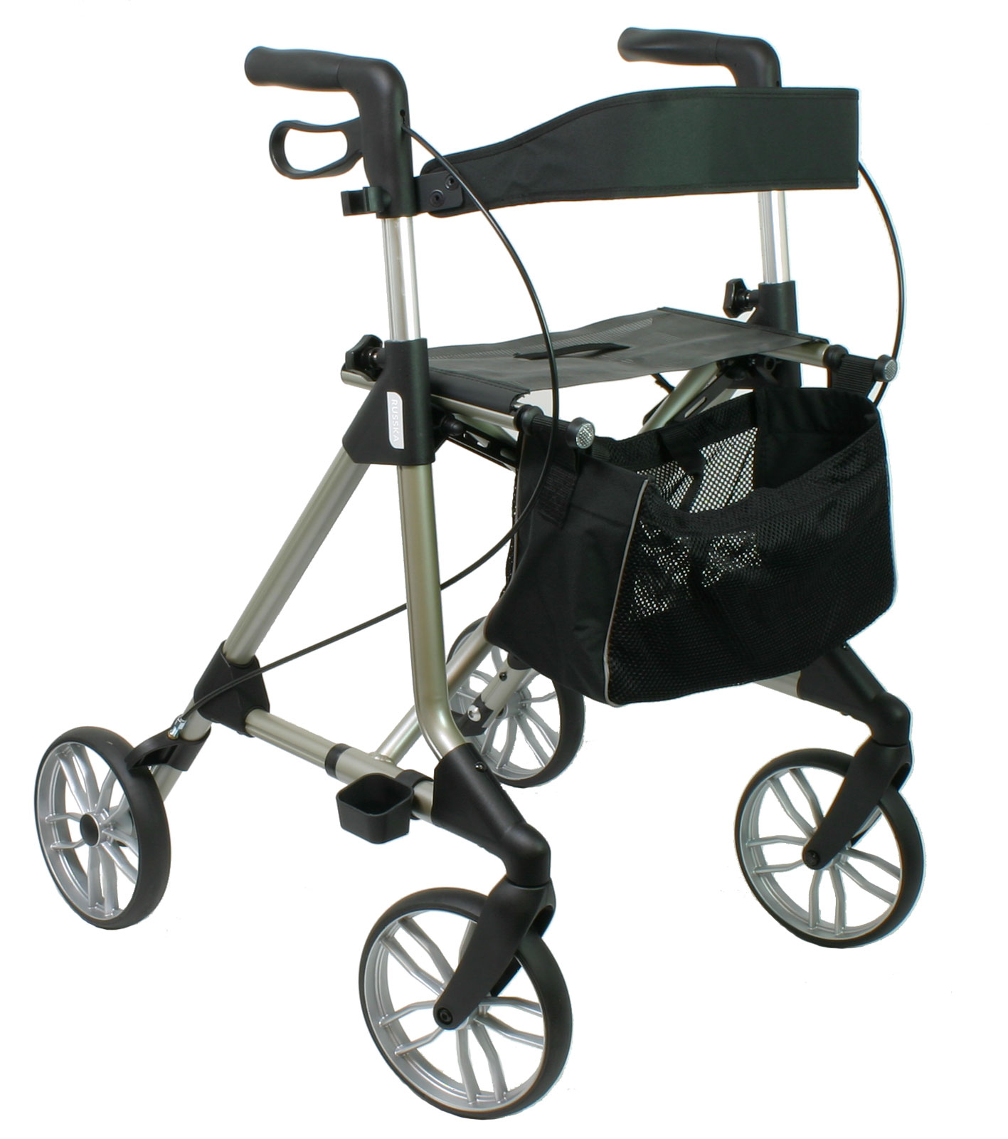 • Der Russka Leichtgewicht Rollator Elan Classic anthrazit oder champagner wird inklusive Rückengurt, Einkaufsnetz und Stockhalter geliefert.