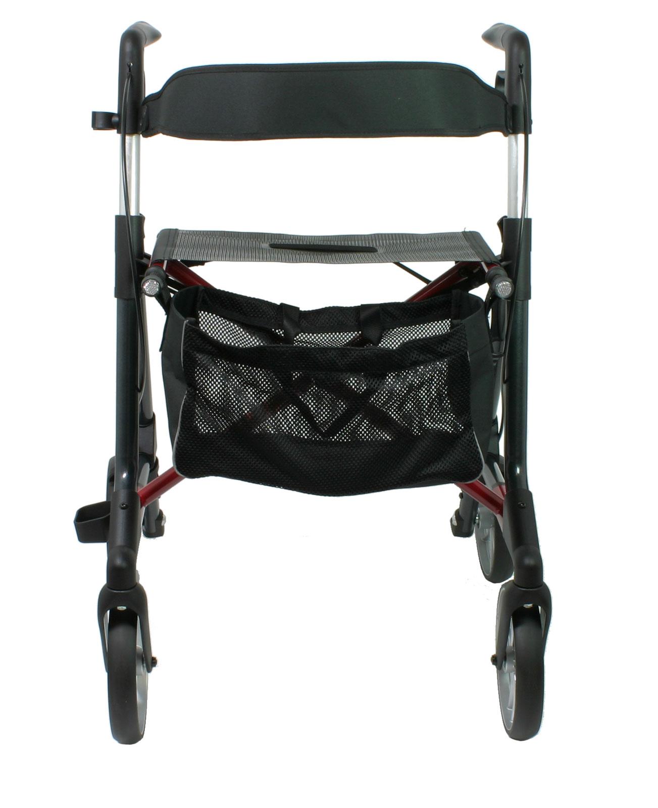 - In den Rahmenfarben champagner oder anthrazit mit dunkelroter Kreuzstrebe wird die mobile Gehhilfe ein praktischer Wegbegleiter im schlichten eleganten Design sein.