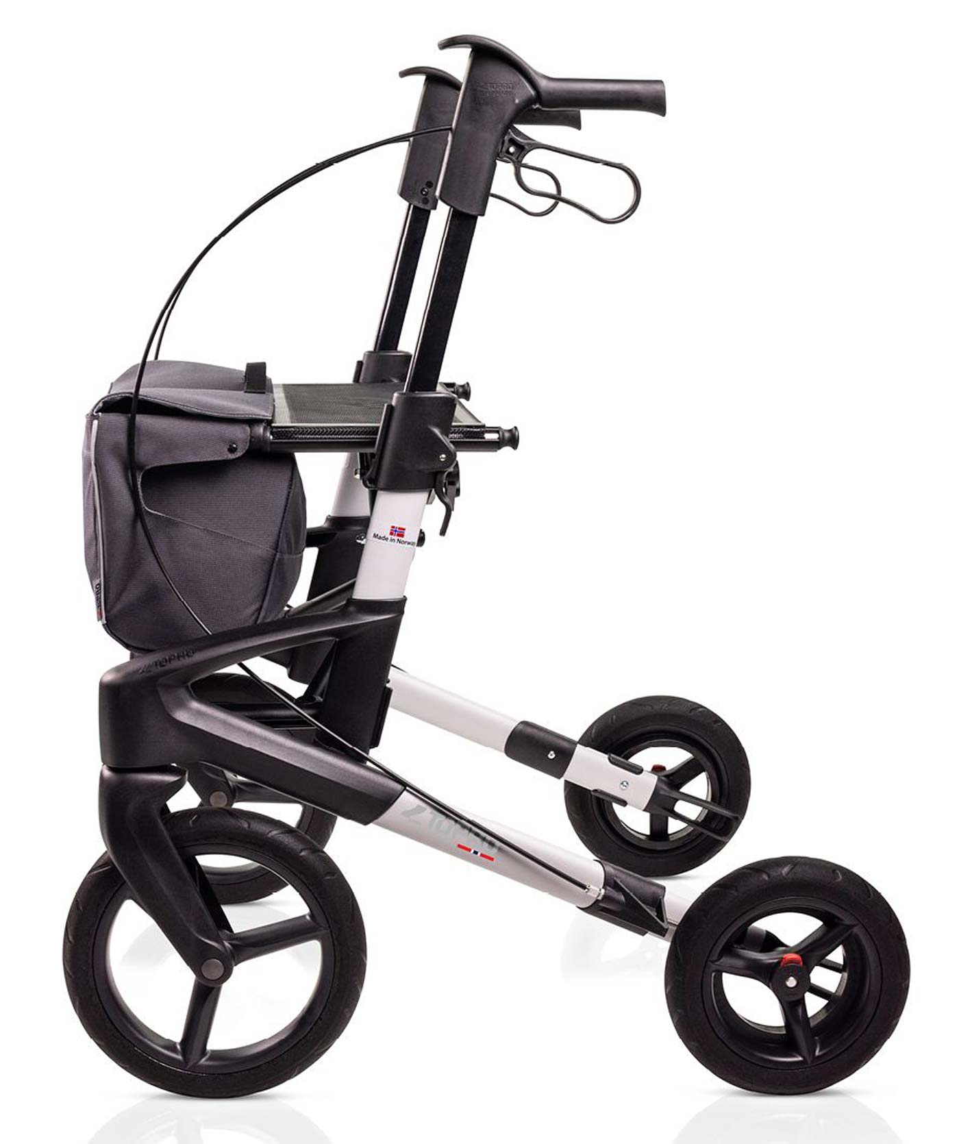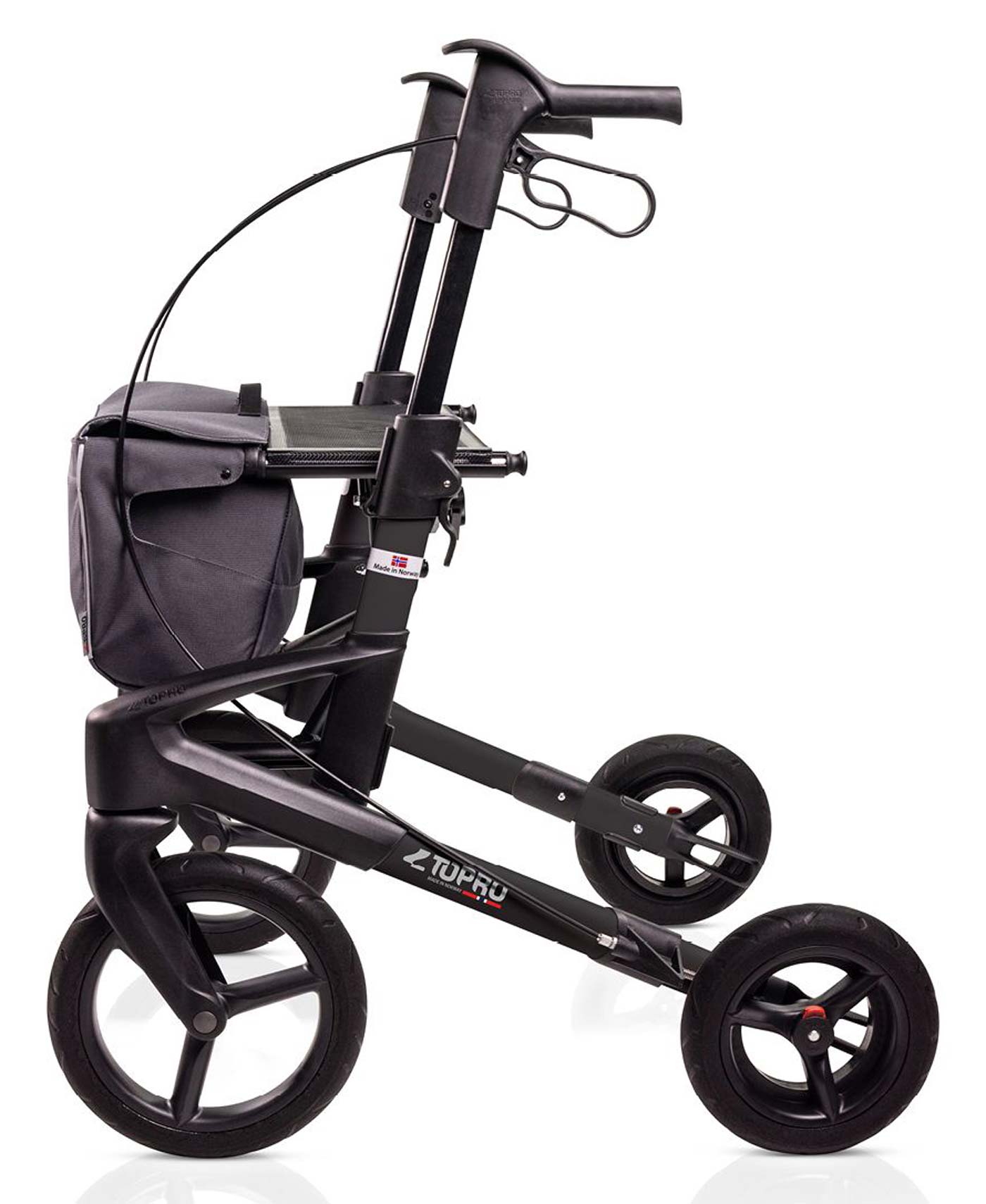 - Wenn Sie die geländegängige Gehhilfe als mobilisierendes Hilfsmittel kaufen, erhalten Sie aus der neuen Black Series Kollektion einen Rollator Topro Olympos ATR M mit einem Stockhalter und einer Einkaufstasche.