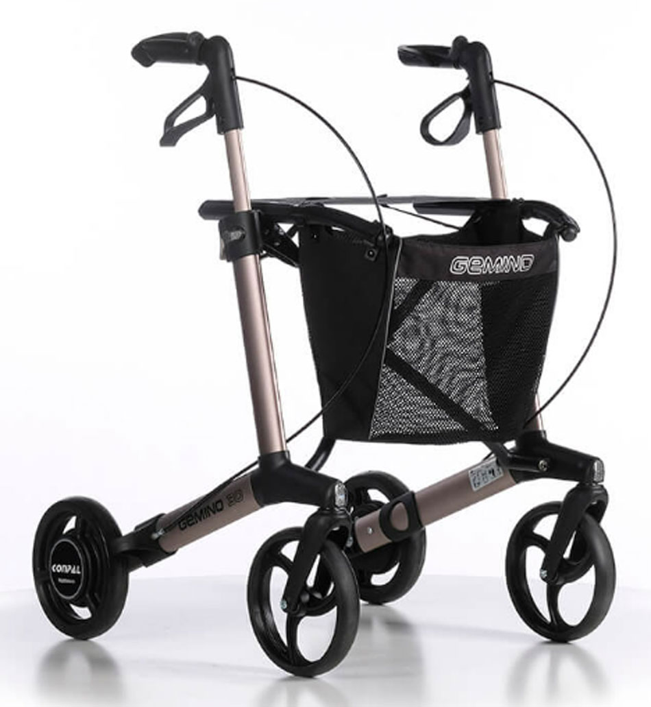 - So zuverlässig und sicher ist der Leichtgewicht Rollator Gemino: besonders leichtgängige Gemino-Bremsen mit breiten Bremsgriffen und Antirutsch-Pads mit Feststellfunktion.