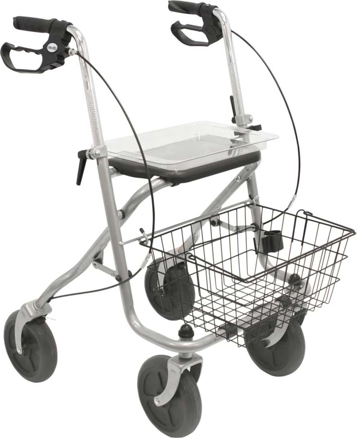 - Der Rollator Migo 2G von Drive Medical ist serienmäßig mit Korb, Tablett und Stockhalter ausgestattet und wird montiert geliefert.