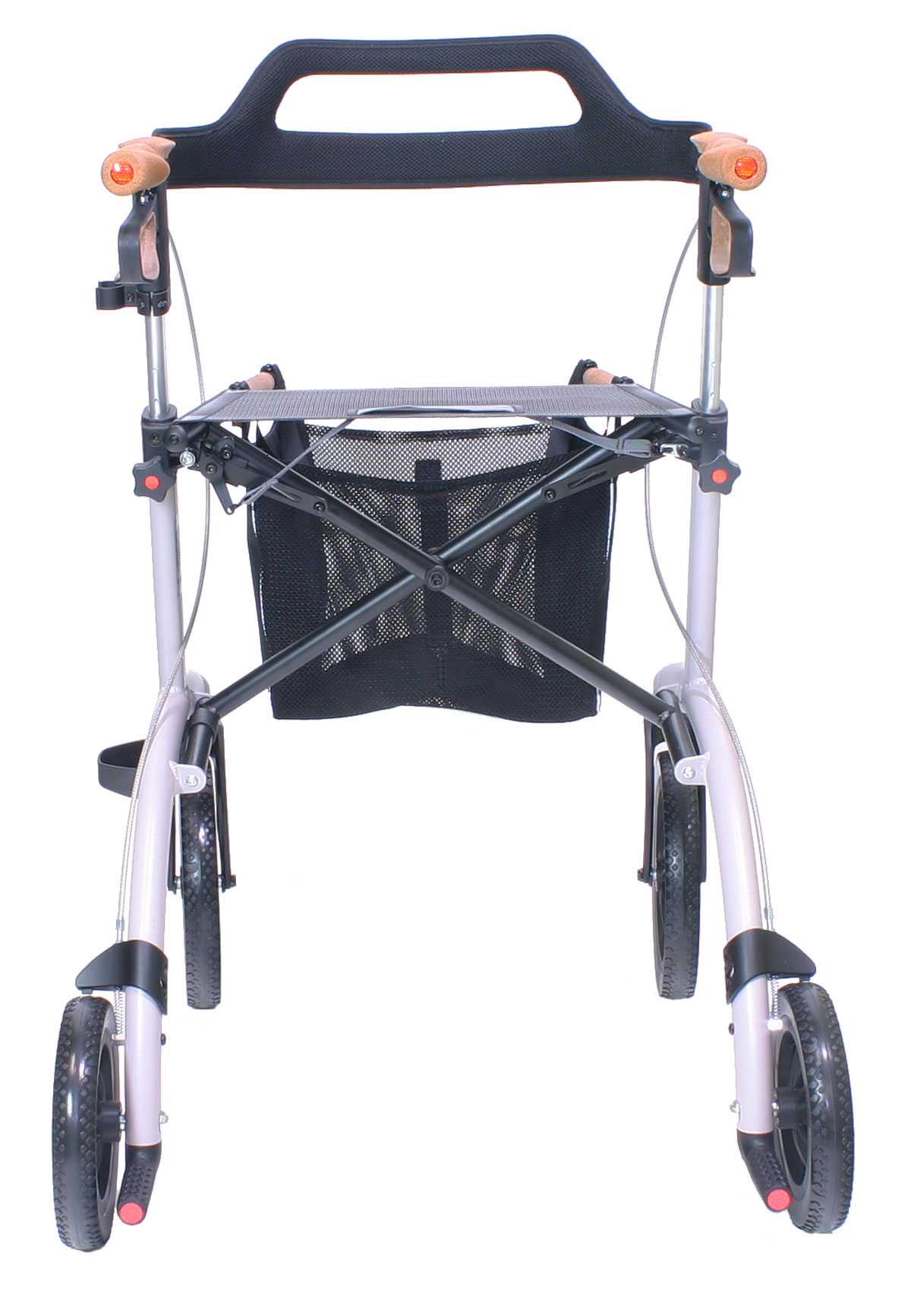 Für bessere Sichtbarkeit in der dunklen Tageszeit ist der Saljol Aluminium Allround Rollator mit mehr als 30 Reflektoren an seinen großen Vorderrädern, den Hinterrädern, am Rahmen, den Griffen, an den Ankipphilfen und des Netzes ausgestattet.