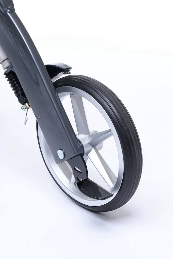 - Bordsteinkanten oder andere Hindernisse, die Sie z.B. bei Standardrollatoren durch umständliches Anheben des Rollators überwunden haben, können Sie mit dem Aluminium Rollator Spring mithilfe der Ankipphilfen überwinden. Die Ankipphilfen sind bodennah angebracht und können bei Nichtnutzung weggeklappt werden. Dies kommt gangunsicheren Personen sehr entgegen.