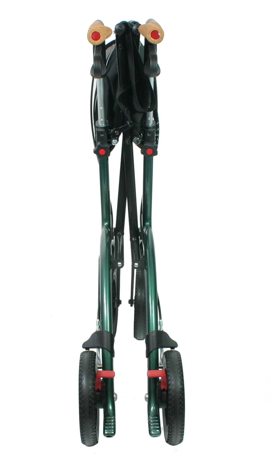- Er steht im zusammengeklappten Zustand sicher und lässt sich weiterhin als Gehhilfe schieben.
