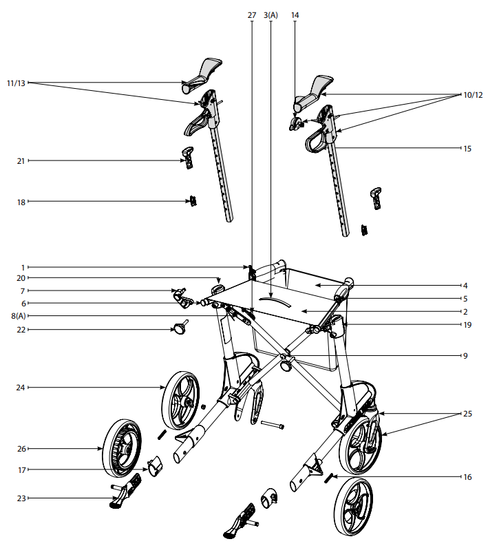 Hier finden Sie die passenden Ersatzteile für den Parkinson Rollator Topro Neuro S/M.