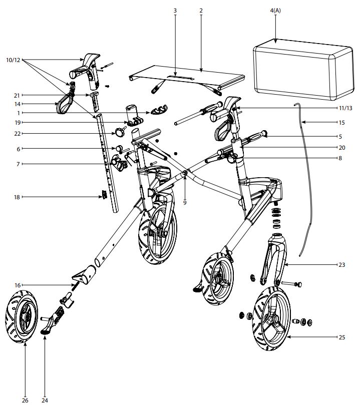 Hier finden Sie die passenden Ersatzteile für den Outdoor Rollator Topro Olympos ATR S/M oder in der schmaleren Variante, die passenden Ersatzteile für den Outdoor Rollator Topro Olympos ATR M Slim