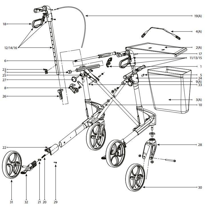 Hier finden Sie je nach Verfügbarkeit die passenden Ersatzteile für den Rollator Topro Troja Orignal und Walker 2.