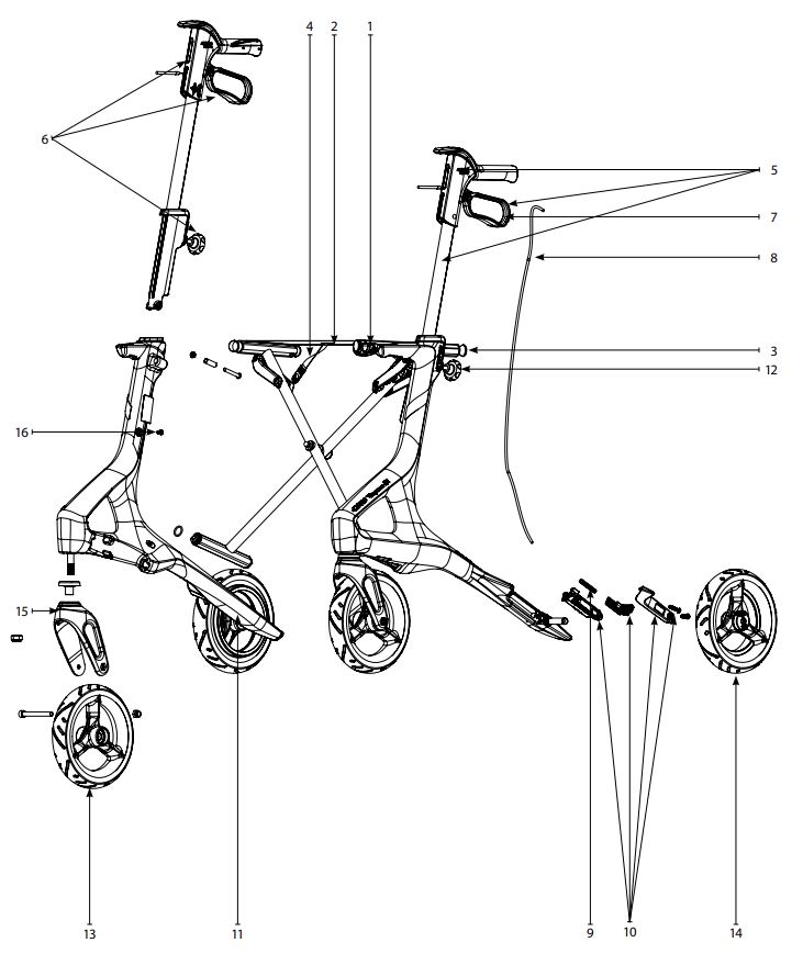 Hier finden Sie je nach Verfügbarkeit die passenden Ersatzteile für den Carbon Rollator Topro Pegasus.