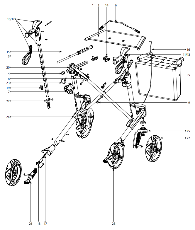 Hier finden Sie je nach Verfügbarkeit die passenden Ersatzteile für den Rollator Topro Troja 5G.