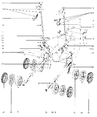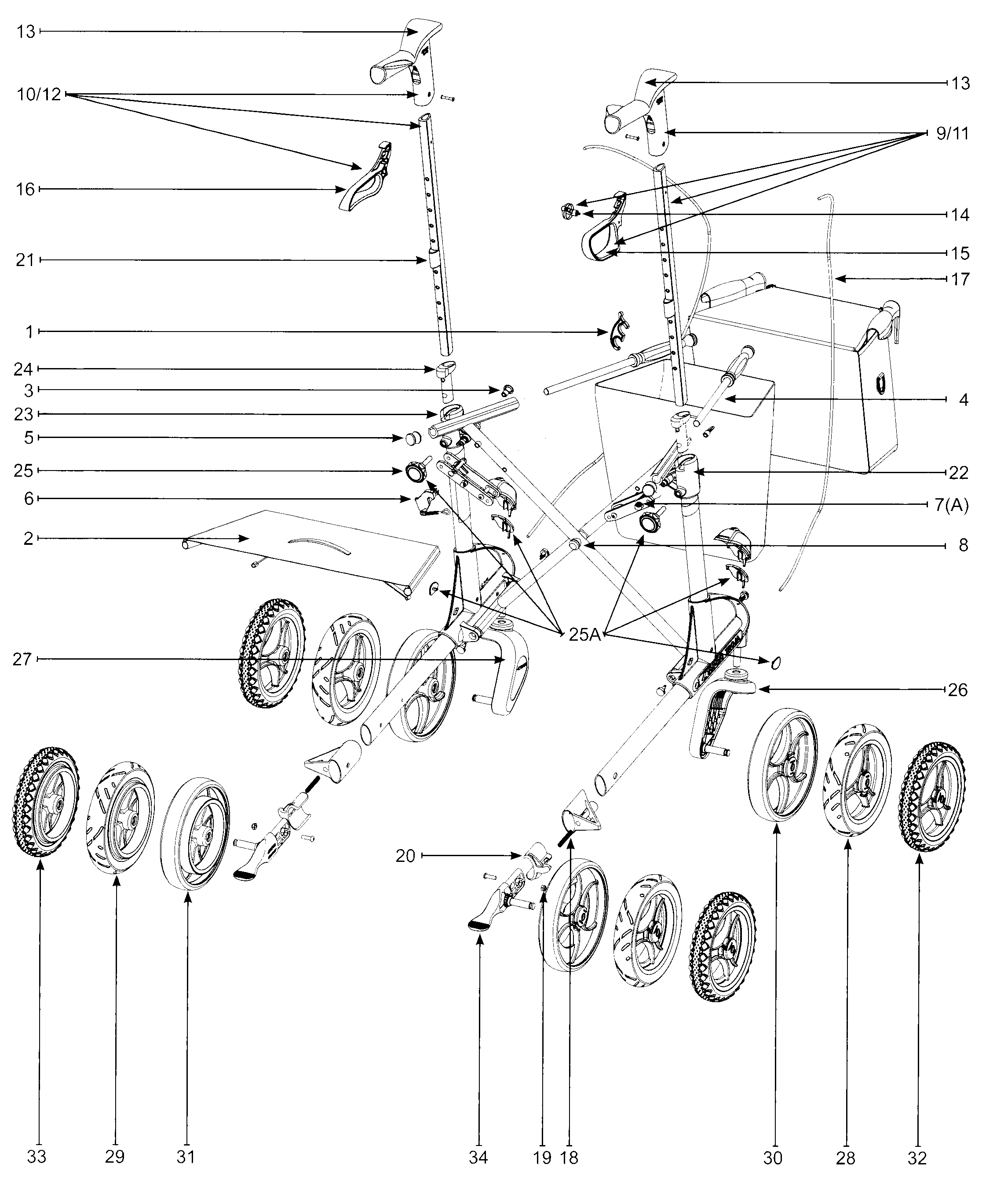 Besitzen Sie einen Topro Troja 2G mit Bremsklotz, der auf das Rad trifft, bestellen Sie bitte die PUR-Räder der anderen Explosionszeichnung.