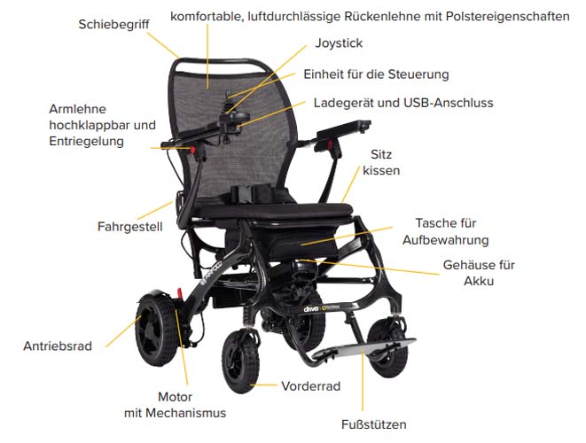 Drive Medical Carbon Elektrorollstuhl Airfold, faltbar