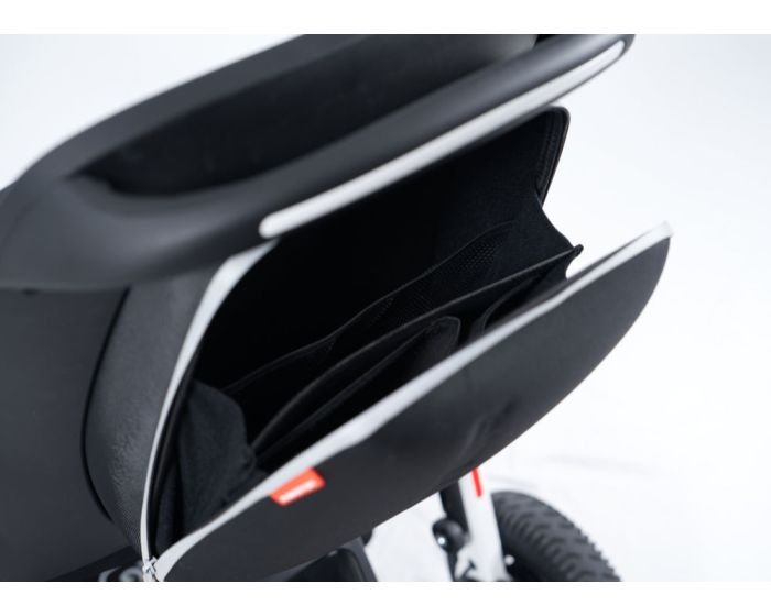 - Eine Tasche an der Rückenlehne und ein Netz unter dem Sitz bieten ausreichend Platz für Einkäufe oder eine Handtasche.