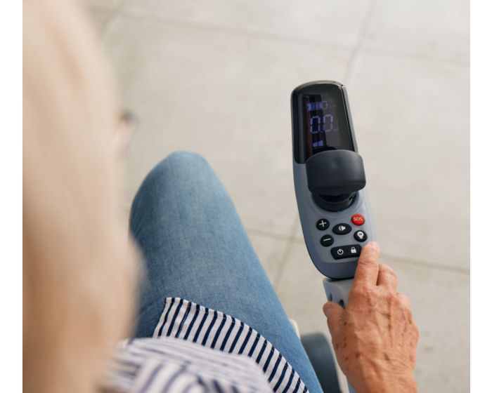 - Die Steuerung des MovingStar 3000 Elektrorollstuhl ist auf Ihren Komfort ausgerichtet. Sie kann wahlweise rechts oder links montiert werden und verfügt über einen Joystick mit großer Handauflage, der einfach, auch bei eingeschränkter Mobilität der Hände, zu bedienen ist.