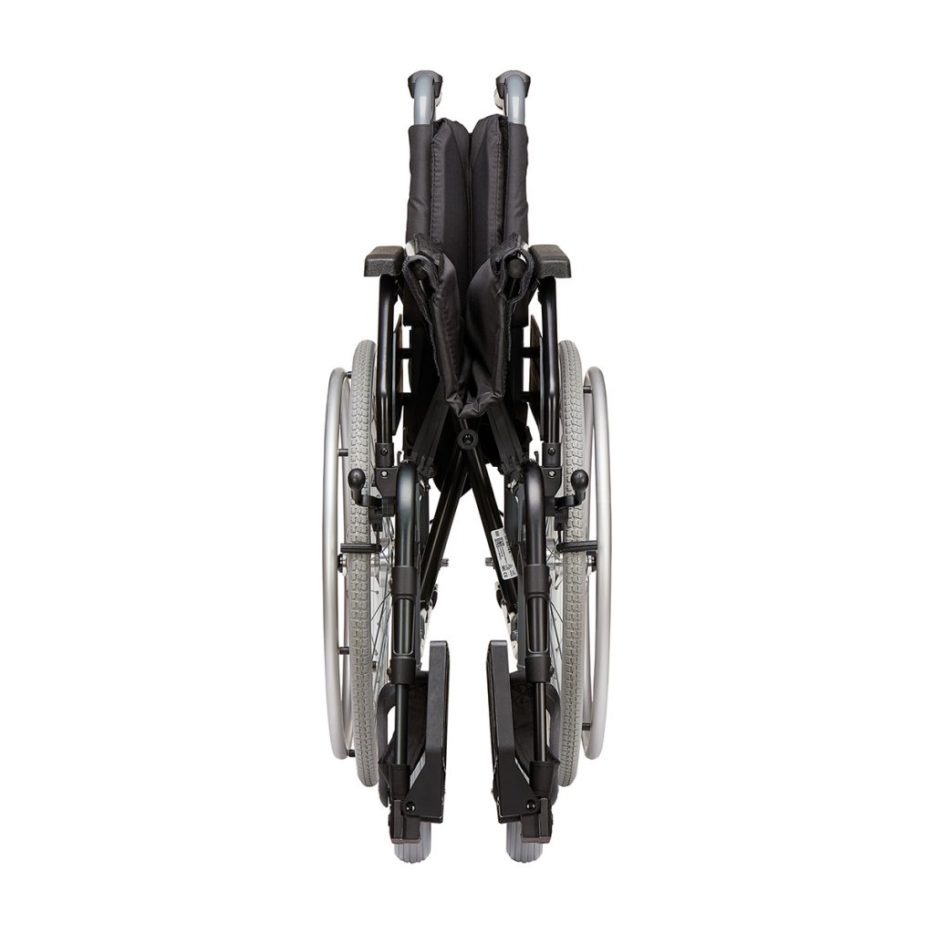 Eine Feststellbremse, die das Wegrollen des Rollstuhls beim Ein- und Aussteigen verhindert, ist standardmäßig vorhanden. Optional kann der Rollstuhl auch mit einer Trommelbremse für die Begleitperson (TBB) geliefert werden. Über die Bremsen an den Schiebegriffen kann so dosiert und sicher das Tempo reduziert werden. Die Trommelbremse empfiehlt sich vor allem beim Einsatz auf abschüssigen Wegen, wenn der Rollstuhl geschoben wird.