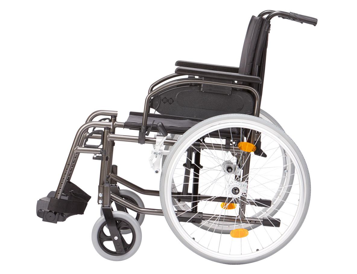 Der faltbare Leichtgewichtrollstuhl Pyro Start Plus SL aus dem Sanitätshaus für große Menschen ab 1,85 m. Mit ihm ist eine Versorgung bis zu einer Körpergröße von 2,10 m möglich. Einstellbar in Sitzhöhe (52,5 – 60 cm), Sitztiefe (46 – 52 cm) und Rückenlehnenhöhe (46 – 50 cm), bietet der Pyro Start Plus SL maximale Flexibilität. Für den Komfort der Begleitperson lässt sich dieser Leichtgewichtrollstuhl zudem optional mit tiefenverstellbaren Schiebegriffen ausstatten.