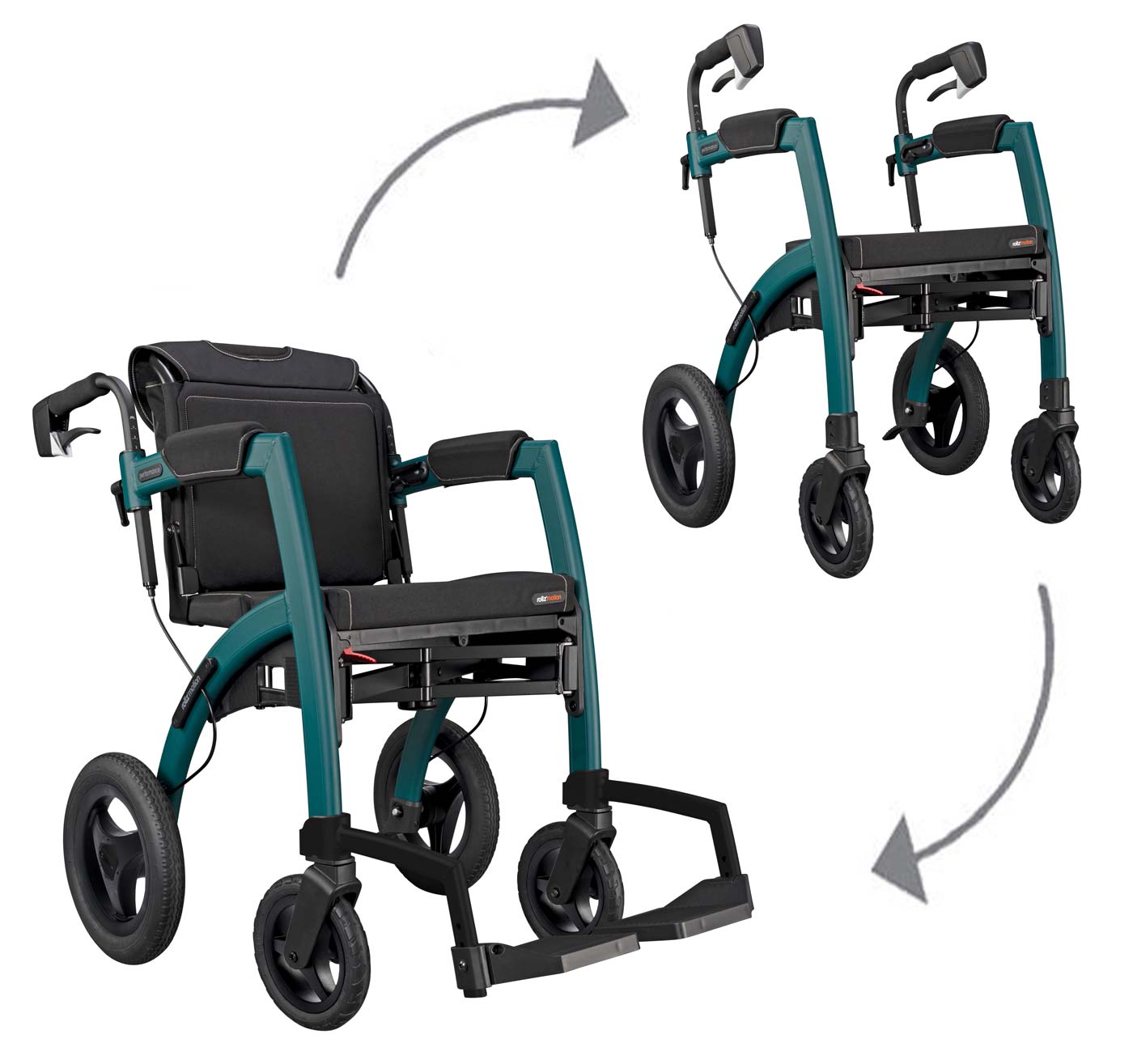 - sekundenschneller Umbau vom Rollator zum Rollstuhl