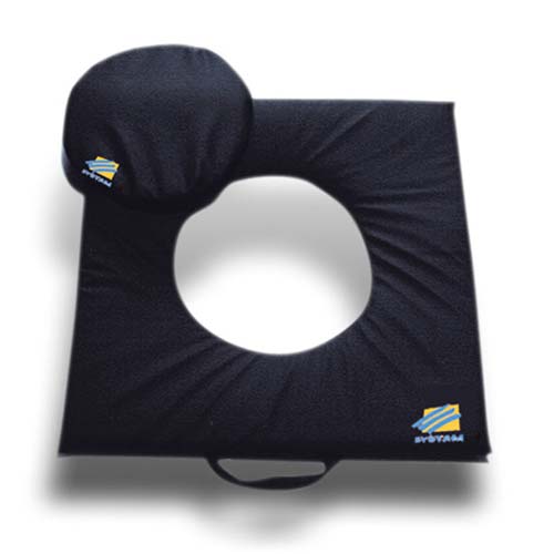 - Optional ist das druckentlastende Sitzkissen in der Größe 40 x 40 cm auch als SYSTAM Gel-Kissen mit herausnehmbarem Mittelkissen und Jersey-Bezug z.B. zur Nutzung auf Toilettenrollstühlen mit Kunststoffbrille verfügbar.
