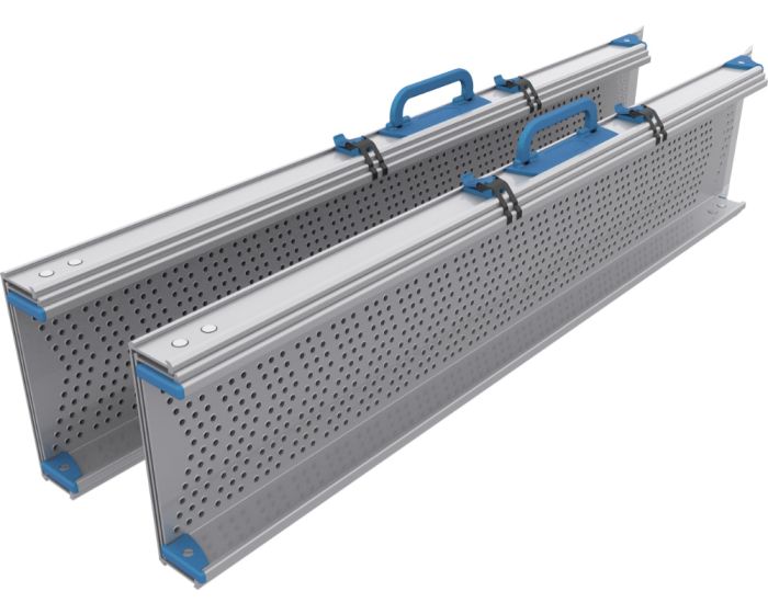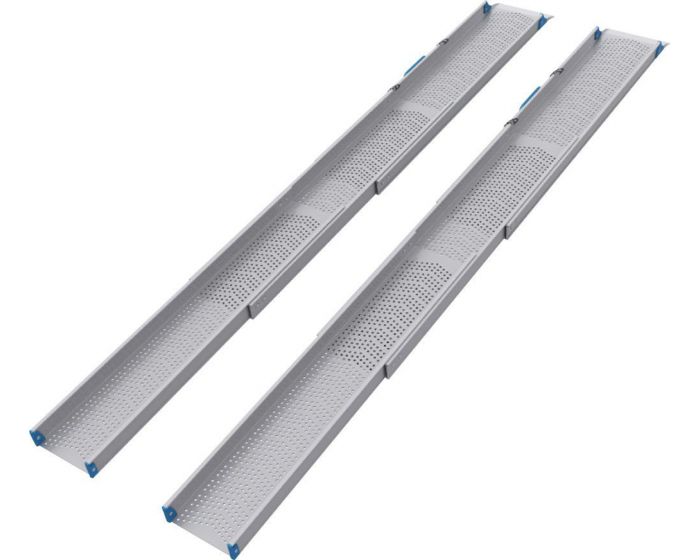 Die Mobile Profil-Rampe, teleskopisch ist in 2 Ausführung erhältlich. Wählen Sie je nach Steigung die richtige Rampe aus. Sie kann vielseitig im Haus und im Freien einsetzt werden. Das perforierte und strukturierte Oberflächenprofil sorgt für Sicherheit und Rutschfestigkeit beim Befahren. Zur Aufbewahrung kann die Rampe zusammengeschoben und an den praktisch integrierten Haltegriffen leicht transportiert werden.