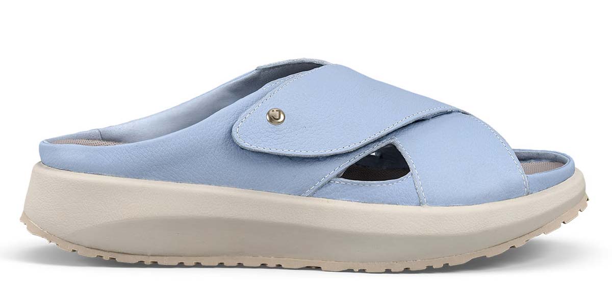 Modische Joya Alicante Light Blue Pantoletten sind weiche Damen Komfortschuhe in Weite H mit breitem verstellbaren Klettverschlüssen und herausnehmbaren Innensohlen. Ob als luftige Pantoletten für die warme Jahreszeit oder als offene Hausschuhe bieten weichen Gesundheitsschuhe mit Joya Senso Sohlen eine hervorragende Dämpfung und ausgewogene Druckverteilung für Ihre Füße. Damen Schuhe Joya Alicante Light Blue sorgen für optimalen Komfort und Entlastung Ihrer Rückenmuskulatur, der Gelenke und Ihrer beanspruchten Füße.