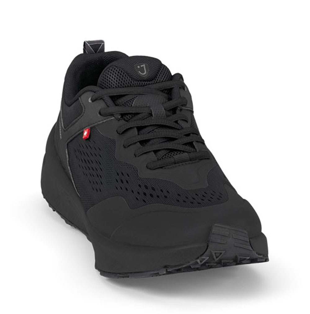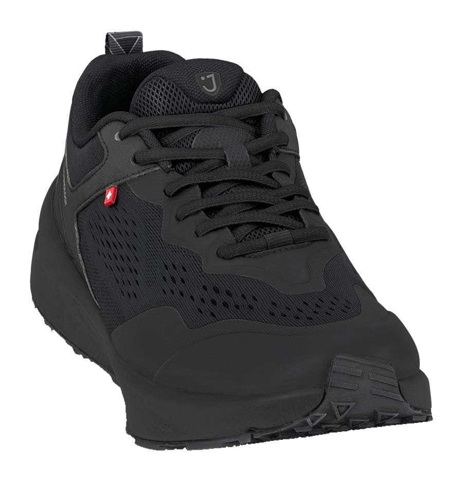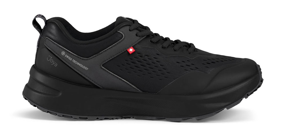 Das schwarze Obermaterial aus technischem Mesh mit weich gepolsterter Zunge und Krageneinstieg ist atmungsaktiv und sorgt für kompromisslosen Komfort zusammen mit der Joya Active Sohlentechnologie, die eine ideale Kombination aus Dämpfung, Rebound und Stabilität garantiert. Slip resistante Joya Damen Schuhe Veloce SR Black entlasten die Füße dynamischer Menschen, die immer in Bewegung sind und Komfort in Aktion und Leistung auf jedem Untergrund brauchen. Aktivieren Sie Ihre Muskulatur, laufen Sie richtig und Ihr Rücken entspannt sich. Die weichen Active-Sohlen der Joya Gesundheitsschuhe für Herren lassen Sie wieder natürlich aufrecht gehen.
