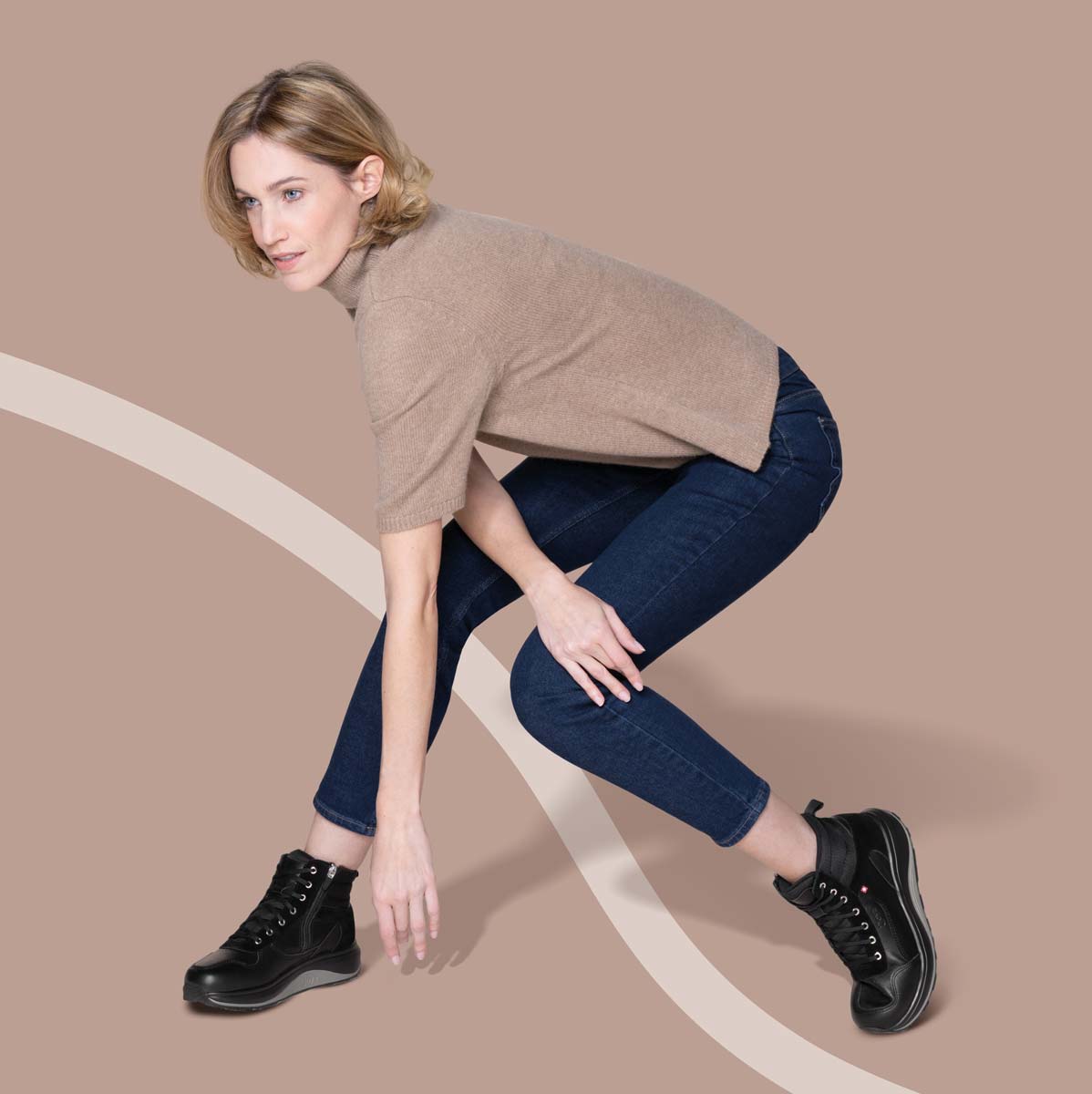 Nutzen Sie das sinnvolle Joya Mehrweitensystem der elastischen, weich gehenden Damen Komfortschuhe Joya Dublin Black bei anschwellenden Füßen. Gerade, wenn Sie den ganzen Tag unterwegs sind oder lange sitzen ist kein alternatives Schuhwerk verfügbar. Mit den ansprechenden, sportlichen Damenschuhen Joya Dublin Black der Wave-Sohlen-Technologie benötigen Sie kein 2. Paar. Entnehmen Sie einfach die speziell entwickelte Mehrweiten-Zwischensohle, erhöhen so Ihr Schuhvolumen und genießen Ihre Joya Schuhe!