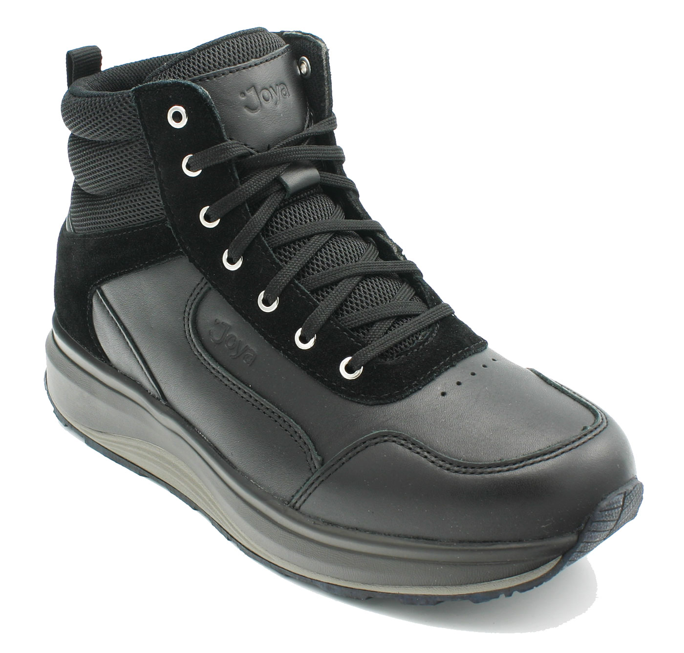 Bequeme Damen Schuhe Joya Dublin Black zum einmaligen Schnüren und seitlichen Zip sind Halt gebende, knöchelhohe Boots für Frauen mit dem Mehrweitensystem der Joya Wave-Sohlentechnologie für spezielle Passformanforderungen Ihrer Problemfüße. Genießen Sie das weich-federnde-Joya-Gehgefühl für die individuell einstellbare Schuhweite H bis K bei angeschwollenen Füßen. Auch mit Ihren individualisierten Maßeinlagen möglich! Die vorhandene, sensomotorische Schuheinlage der weichen Gesundheitsschuhe für Frauen kann durch individuell vom Orthopäden verschriebene und im Sanitätshaus angefertigte Einlagen getauscht werden. Entspannen Sie Ihre Füße und erleben das angenehme Laufgefühl mit der leichten Abrolldynamik.