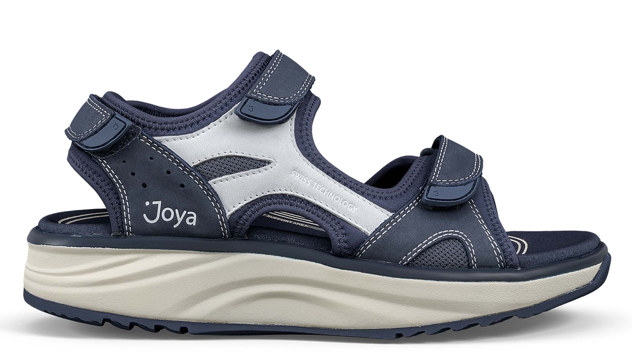 Modische Damen Schuhe Joya Komodo II blue Outdoor-Sandalen für Damen aus Leder und Mesh, mit weich gepolstertem Neoprenfutter und verstellbaren Klettverschlüssen an Ferse, Rist und Vorfuß bieten entspanntes, weiches Gehen in Weite H. Die blauen Joya Sandalen für sportliche Frauen verfügen über ein ergonomisches Fußbett, das von weicher, samtiger Mikrofaser umhüllt wird. Ausgestattet mit der Joya Active Sohlentechnologie, die Ihnen eine ideale Kombination aus Dämpfung, Rückfederung und Stabilität garantiert. Joya Komodo II blue Sandalen bieten dynamischen Frauen, die immer in Bewegung sind und Komfort in Aktion und Leistung auf jedem Untergrund brauchen. Mit der gelenkentlastenden Joya Active Sohlentechnologie aus der Schweiz entscheiden Sie sich für ein elastische, stoß absorbierende Markenschuhe, die eine ideale Kombination aus Dämpfung, Rückfederung und Stabilität garantieren und gesundes und schmerzfreies Gehen bieten.Sportliche Joya Damen Sandalen für Ihre Gesundheit