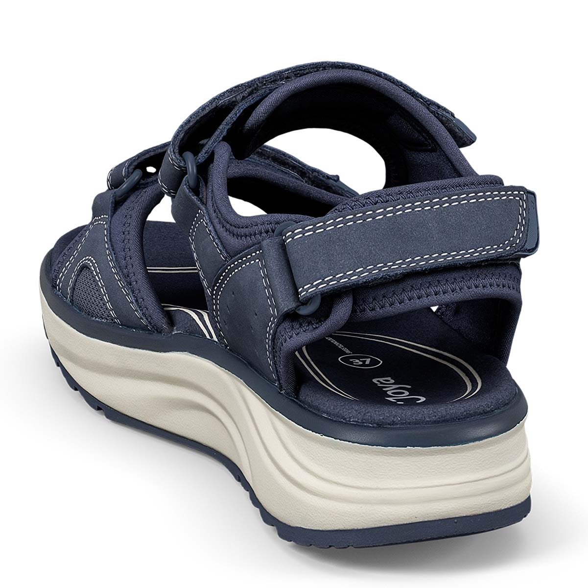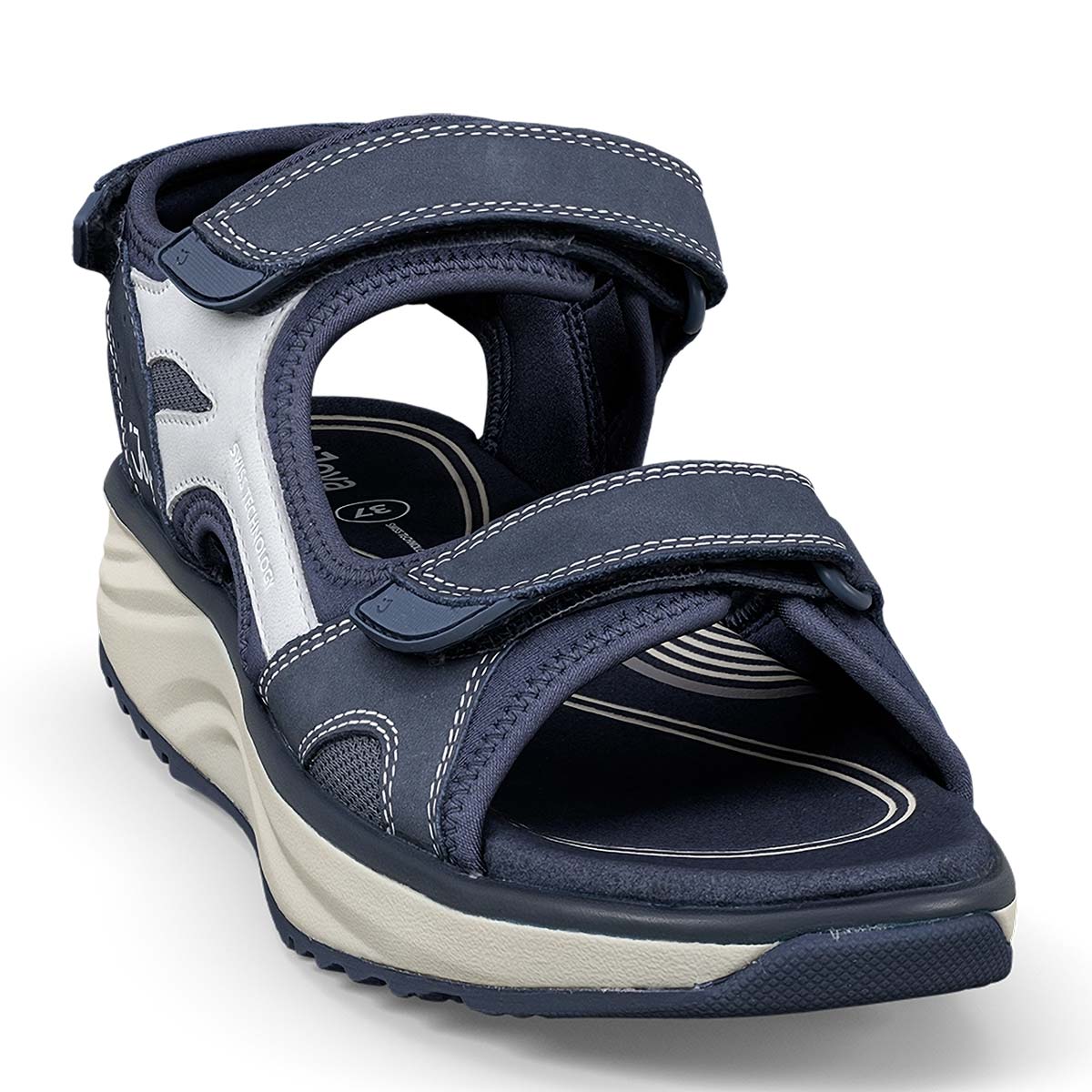 Die sportlichen Damensandalen Joya Kommodo II blue unterstützen in Weite H Ihre gesunden Bewegungen und lassen Sie mit jedem Schritt den weichen Gehkomfort dank stoßdämpfender Sohlen der Gesundheitsschuhe entspannt unterwegs sein. Joya Damen Schuhe Komodo II Blu sind geeignet für Menschen mit sportlich-aktivem Lebensstil, sowohl für die Arbeit als auch in der Freizeit, wenn körperliche Entlastung beim Gehen und Stehen wichtig ist. Aktivieren Sie Ihre Muskulatur, gehen Sie gesund, und Ihr Rücken entspannt sich. Die weichen Sohlen der Joya Komfortschuhe für Damen lassen Sie wieder natürlich aufrecht gehen.