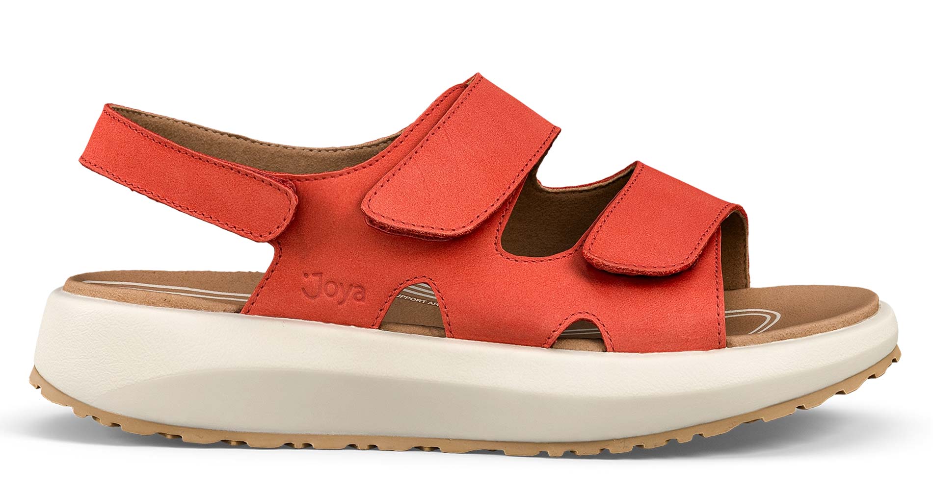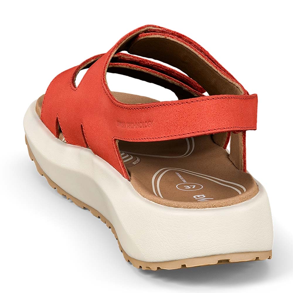 Wohltuende Joya Panama Red Damen Schuhe sind Ihre bequemen Sandalen mit einstellbaren Klettverschlüssen für die Schuhweiten H–K. Ausgerüstet sind die luftigen Gesundheitsschuhe mit gelenkentlastenden Joya-Senso-Sohlen, die Ihnen an warmen Tagen oder zu Hause als offene Hausschuhe eine hervorragende Dämpfung und ausgewogene Druckverteilung bieten und so für den optimalen Komfort sowie Entlastung Ihrer Rückenmuskulatur, der Gelenke als auch Ihrer beanspruchten Füße sorgen.