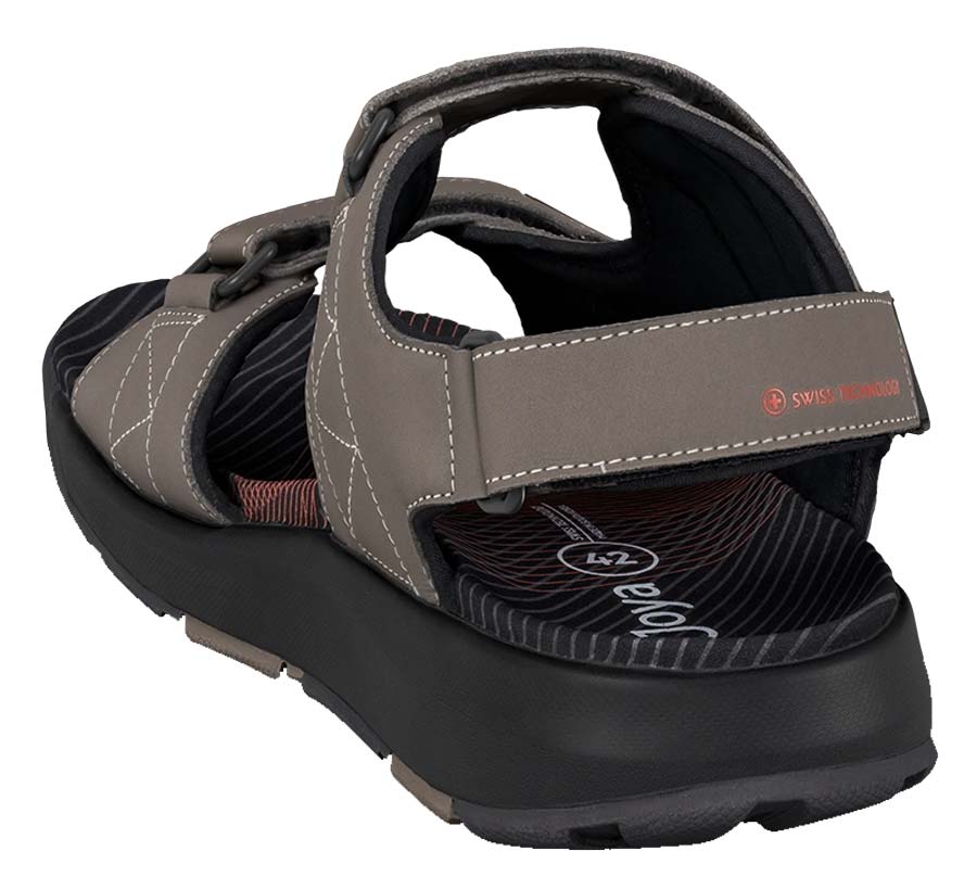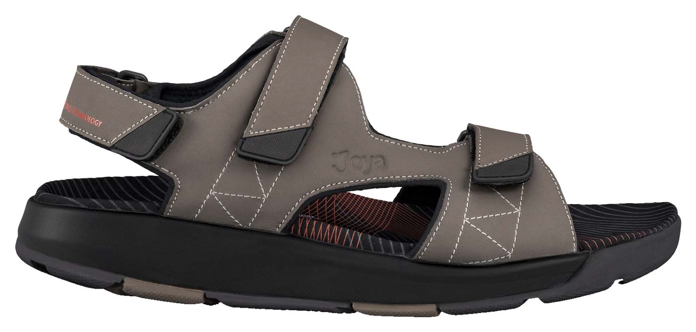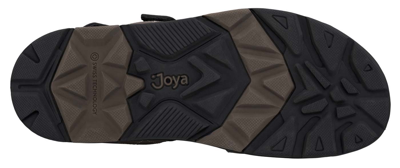 Sportliche Joya Alexander Brown Herren Sandalen mit weich gepolstertem Neoprenfutter und verstellbaren Klettverschlussriemen an Ferse, Rist und Vorderfuß entlasten Ihre Gelenke bei Outdoor Aktivitäten auf unebenen Untergründen mit stoß absorbierendem Auftritt der Gesundheitsschuhe. Ausgestattet mit ergonomischem Fußbett, das mit weicher Mikrofaser umhüllt ist und mit der Joya Active Sohlentechnologie, die eine ideale Kombination aus Dämpfung, Rebound und Stabilität garantiert, ist der Außensohlengriff speziell für Ihre Aktivitäten im Freien konzipiert. Für dynamische Menschen, die immer in Bewegung sind und Komfort in Aktion und Leistung auf jedem Untergrund brauchen.