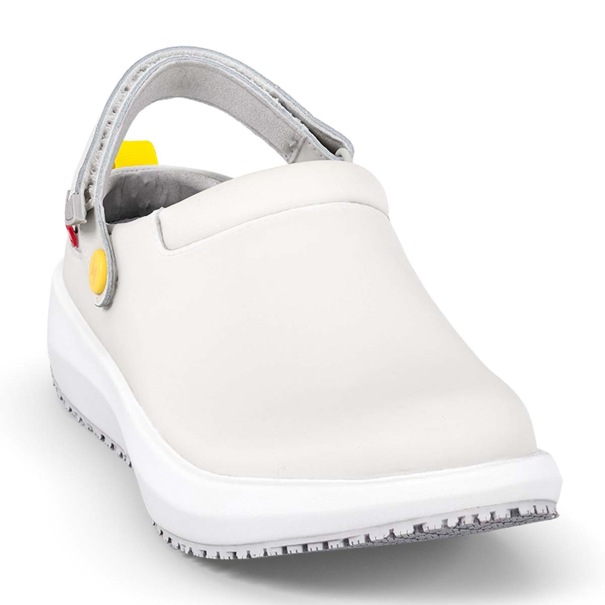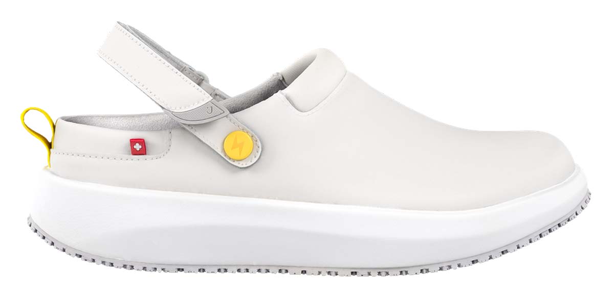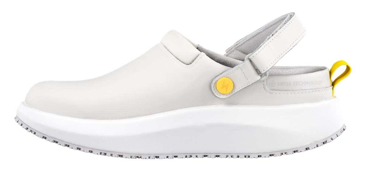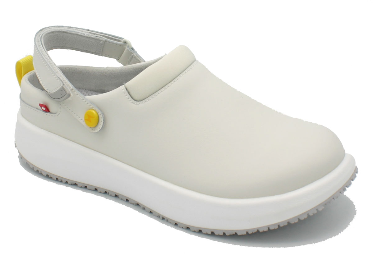 Bequeme Herren Schuhe Joya ACE ESD M White sind weich, stoß absorbierende Clogs für Herren mit sicherndem Fersenriemen für gesundes Gehen auf harten Böden im Arbeitsalltag. Denn weiche Joya Gesundheitsschuhe für Herren bieten Ihnen aufgrund der patentierten Joya Senso Sohlen optimale Druckverteilung mit hervorragender Dämpfung für Ihre gestressten Füße. Verbringen Sie viel Zeit während einer sitzenden Tätigkeit, richten Joya Schuhe mit Senso Sohlen Sie wieder auf und entspannen Ihre Rückenmuskulatur. Die Berufsschuhe Joya ACE ESD sind mit TÜV-Süd geprüften antistatischen ESD-Sohlen für den medizinischen Bereich ausgerüstet.