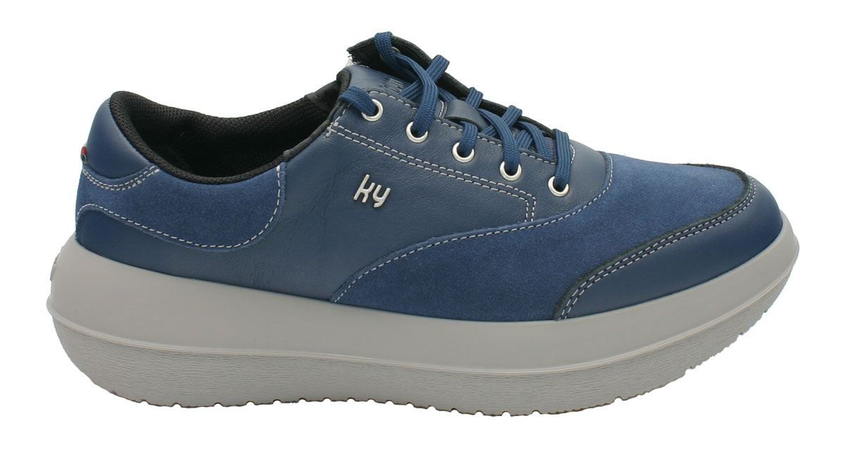 Die bequemen Damen Schuhe Kybun Aarau Blue mit den weich-elastischen Luftkissensohlen mit Luftzylinder Strato überzeugen im eleganten, sportlichen Design mit einer Kombination aus weichem Glatt- und Veloursleder. Einmal richtig geschnürt, können Sie die funktionalen Komfortschuhe aus der Schweiz mit dem seitlichen Zip öffnen und schließen. Der seitlich am Fußrücken integrierte Reißverschluss ermöglicht Ihnen ein sehr einfaches An- und Ausziehen, ohne dass Sie die Schnürsenkel neu binden müssen.