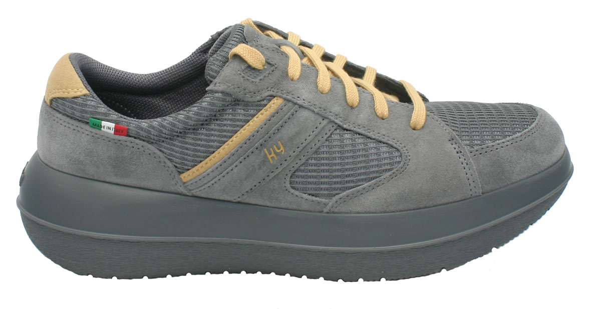 Die Kybun Airolo 20 Anthrazite M Herren Schuhe sind Ihre sportlichen Allrounder mit Strato Luftkissensohlen für den Alltag. Frische Beige Akzente verleihen dem sportlichen Design der grauen Lederschuhe für Männer lebendige Highlights und passen perfekt zu einem légèren Freizeit-Look. Möchten Sie es schlichter, liegen der Lieferung ein extra Paar graue Schnürsenkel bei.