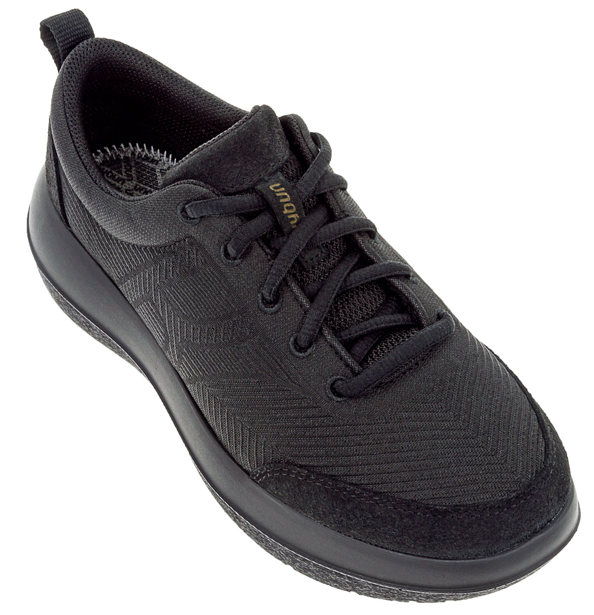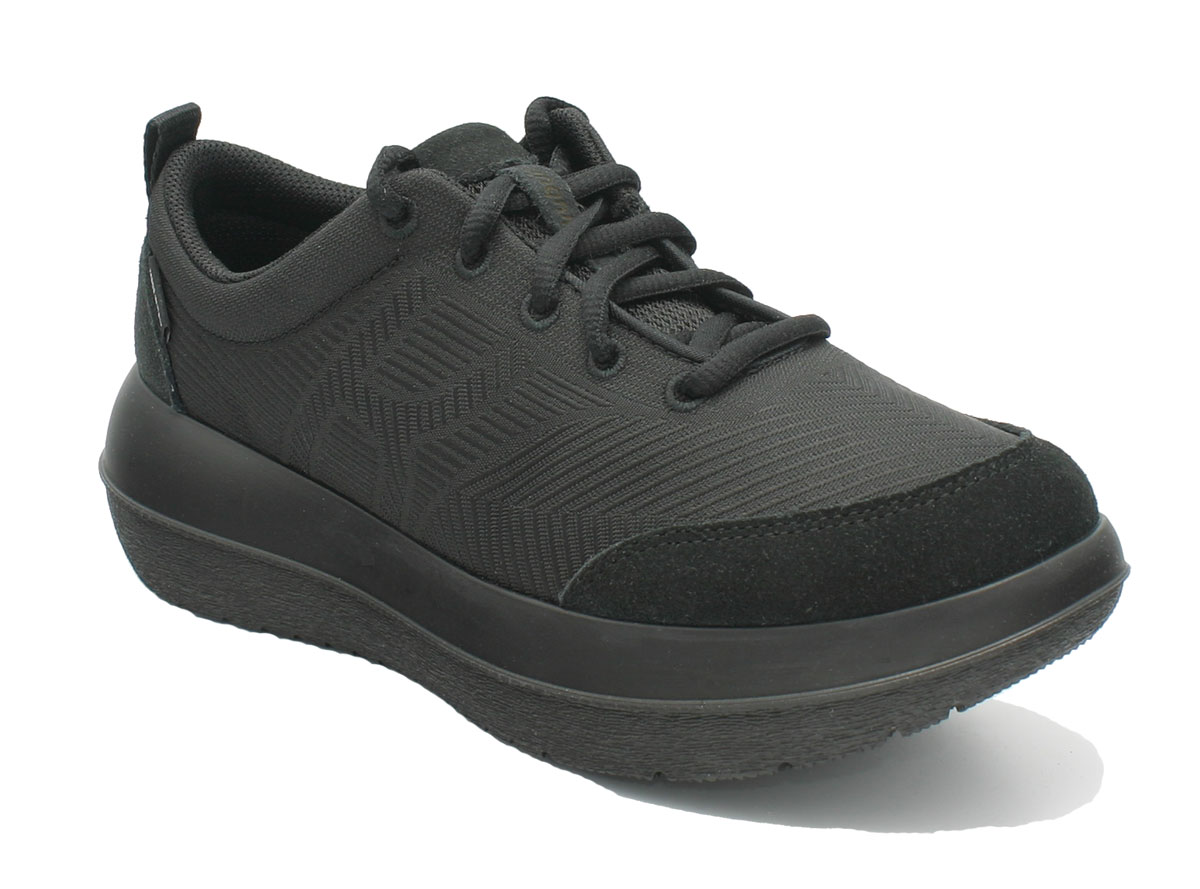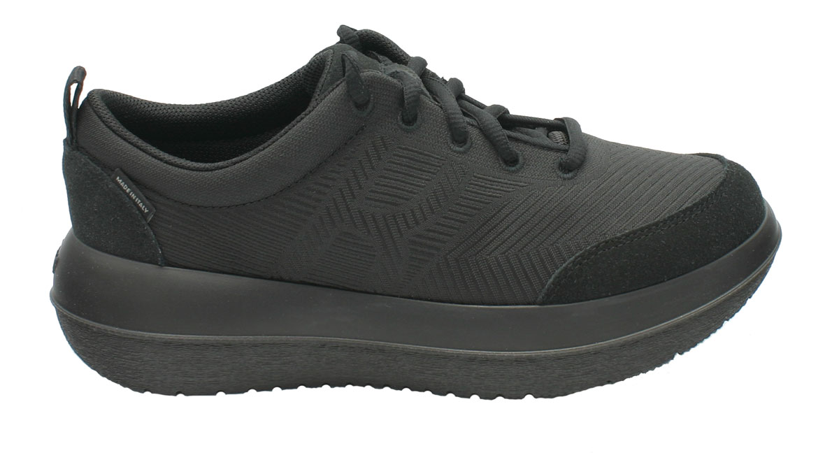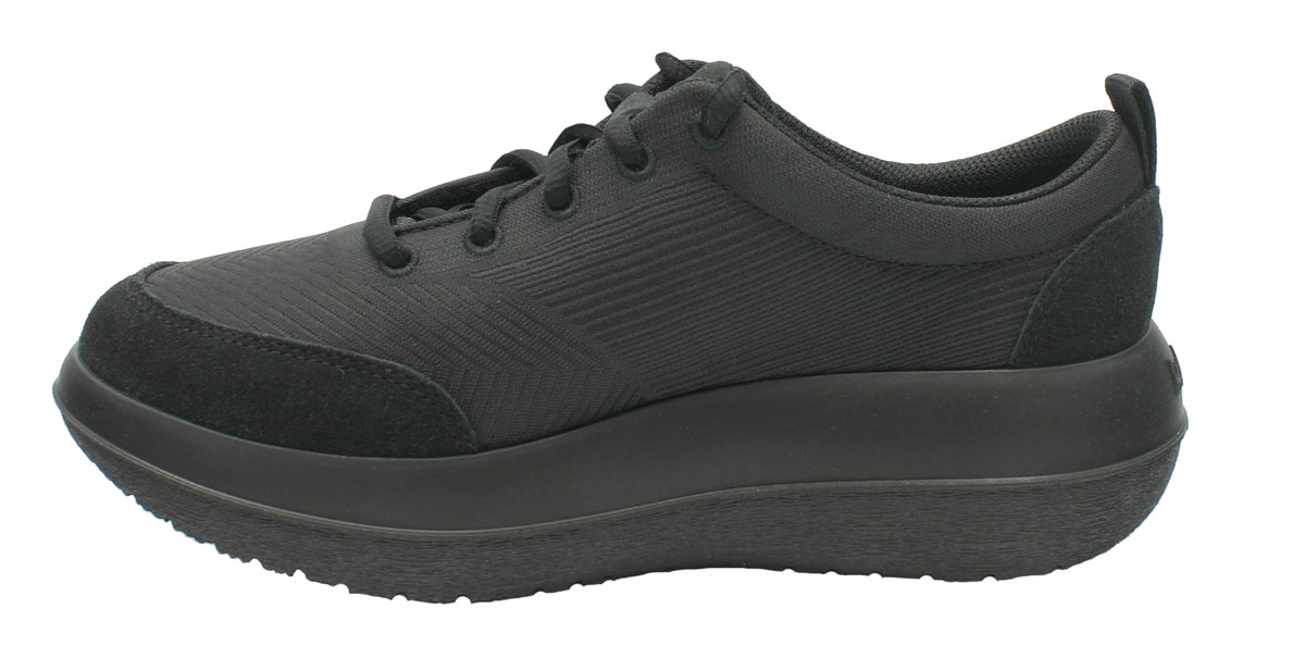 Die Damen Schuhe Kybun Bauma 20 Black mit den elastisch federnden Strato Luftkissensohlen in bequemer Weite bestechen durch ihr modernes gewobenes Linien-Design. Es verleiht den Kybun Gesundheitsschuhen für Frauen die richtige dezente Sportlichkeit. Denn dank der modernen und doch zurückhaltenden Optik lassen sie sich fast unendlich kombinieren. Den Namen haben die Komfortschuhe von Kybun für Damen von der Gemeinde Bauma in der Schweiz, die bekannt ist für die Verarbeitung von Textilien, unter anderem für die speziellen Jacquard-Webmaschinen. Das edle Jacquard-Muster gibt den Kybun Bauma 20 Black Luftkissenschuhen ihren Namen.