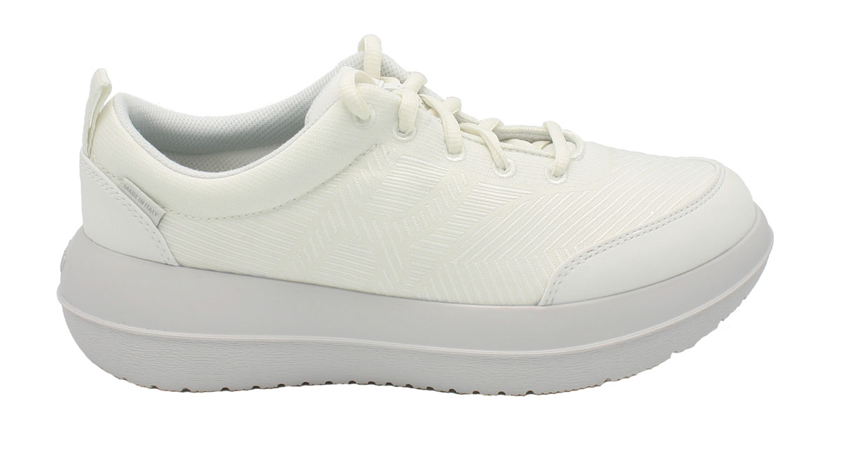 Die Komfortschuhe Kybun Baum White mit dem Vegan-Label sind 100 % vegan. Bei der Herstellung werden ausschließlich vegane Materialien verwendet, von den Schnürsenkeln bis zum Kleber.