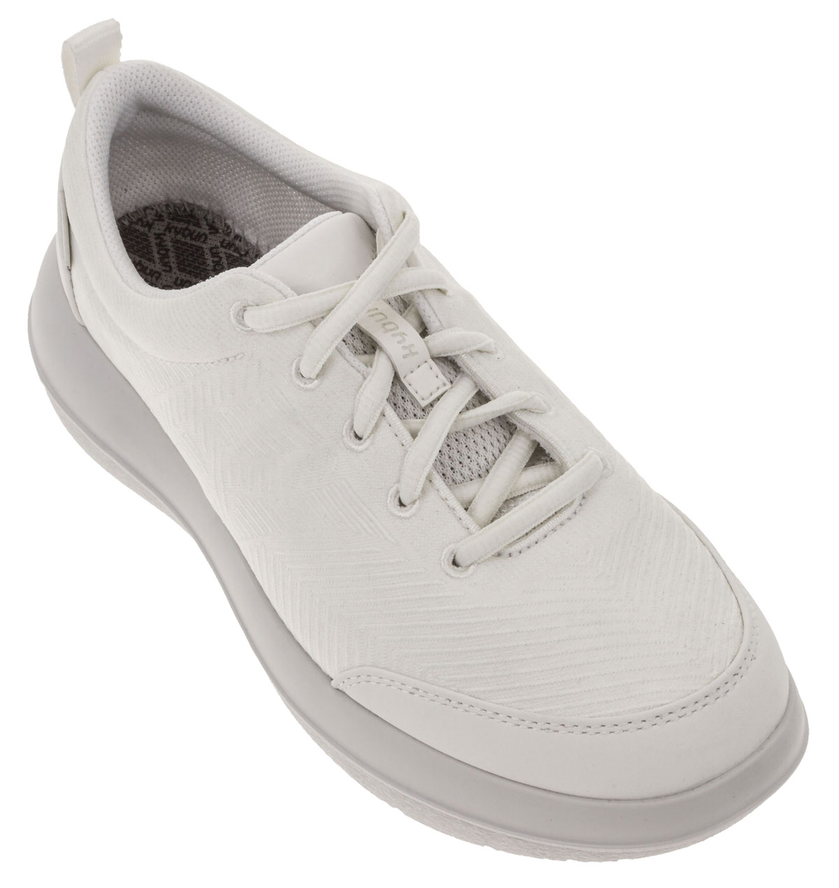 Mit den Damen Schuhe Kybun Bauma White entscheiden Sie sich für 100 % vegane Komfortschuhe der Schweizer Marke Kybun. Ausgestattet mit elastisch-federnden Strato Luftkissensohlen in bequemer Weite bestechen die weich gedämpften Gesundheitsschuhe im modernen gewobenen Linien-Design im Obermaterial aus Mikrofaser und Jacquard. Diese dezente Sportlichkeit in zurückhaltenden Optik lässt sich vielseitig mit fast jeder Bekleidung kombinieren. Das edle Jacquard-Muster gibt dem Kybun Bauma White Luftkissenschuhe seinen Namen. Ihren Namen haben die Kybun Komfortschuhe für Damen von der Gemeinde Bauma in der Schweiz, die bekannt ist für die Verarbeitung von Textilien, unter anderem für die speziellen Jacquard-Webmaschinen.