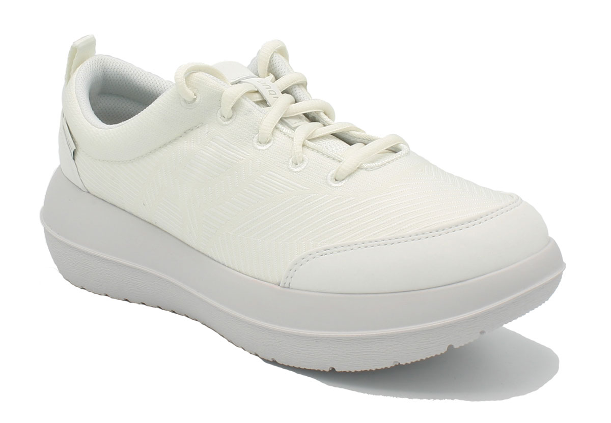 Gehen Sie entspannt und lassen sich verwöhnen von den elastisch-federnden Luftkissensohlen Kybun Strato wie auf einem Trampolin. Schon nach dem Einstieg in die Damen Kybun Baum White Luftkissenschuhen werden Sie das Besondere dieser Gesundheitsschuhe spüren und begeistert sein, denn die Luftkissensohlen entlasten Ihre schmerzenden Füße mit einem weich gedämpften Auftritt. Aufgrund der breiteren Sohlen stehen Sie sicher und lassen beim Gehen die Sohlen stabil abrollen. Hierbei erleben Sie wie auf einem Trampolin den entspannenden und trainierenden Effekt der Kybun Strato Luftkissensohlen. Die elastisch-federnden PU Sohlen trainieren Ihre Muskulatur und entlasten mit entspannten Schritten zugleich Ihren Körper. Wir empfehlen: Ziehen Sie die Kybun Komfortschuhe für Frauen an, gehen los, genießen Sie das einzigartige Laufgefühl. Gleichzeitig profitiert Ihr Körper von einem integrierten Training.
