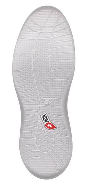 Die stoß absorbierenden Kybun Luftkissensohlen der Damenschuhe Bauma White von Kybun sind rutschfest. Die Rutschfestigkeit der Kybun Luftkissensohlen wurde durch präzise Labortests in den USA bestätigt.