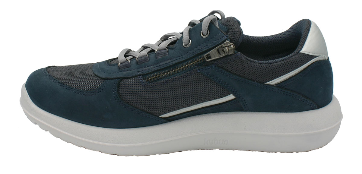 Die bequemen Komfortschuhe Kybun Rolle Navy für Herren sind mit der Kybun Tropo Sohle mit schwächerem Trampolin-Effekt ausgestattet. Diese Kybun Sohle hat ein verbessertes Profil für quietschende Böden und besitzt das "Kybun light"-Gefühl mit weniger Erstreaktionen. Deshalb ist die Tropo Sohle ideal für Träger mit Schwächen in der Muskulatur oder Gleichgewichtsstörungen. Außerdem bieten Sie ein schmerzfreies Training für alle Bewegungsbegeisterten, die die Kybun Gesundheitsschuhe auch beim Sport nicht vermissen möchten. Perfekt für Sportarten wie Tennis, Volleyball, Joggen usw., bei denen es weniger um das Gewinnen als vielmehr um schmerzfreie Bewegung geht. Dieser Sohlentyp bietet Ihnen eine leicht reduzierte Intensität und Wirkung.