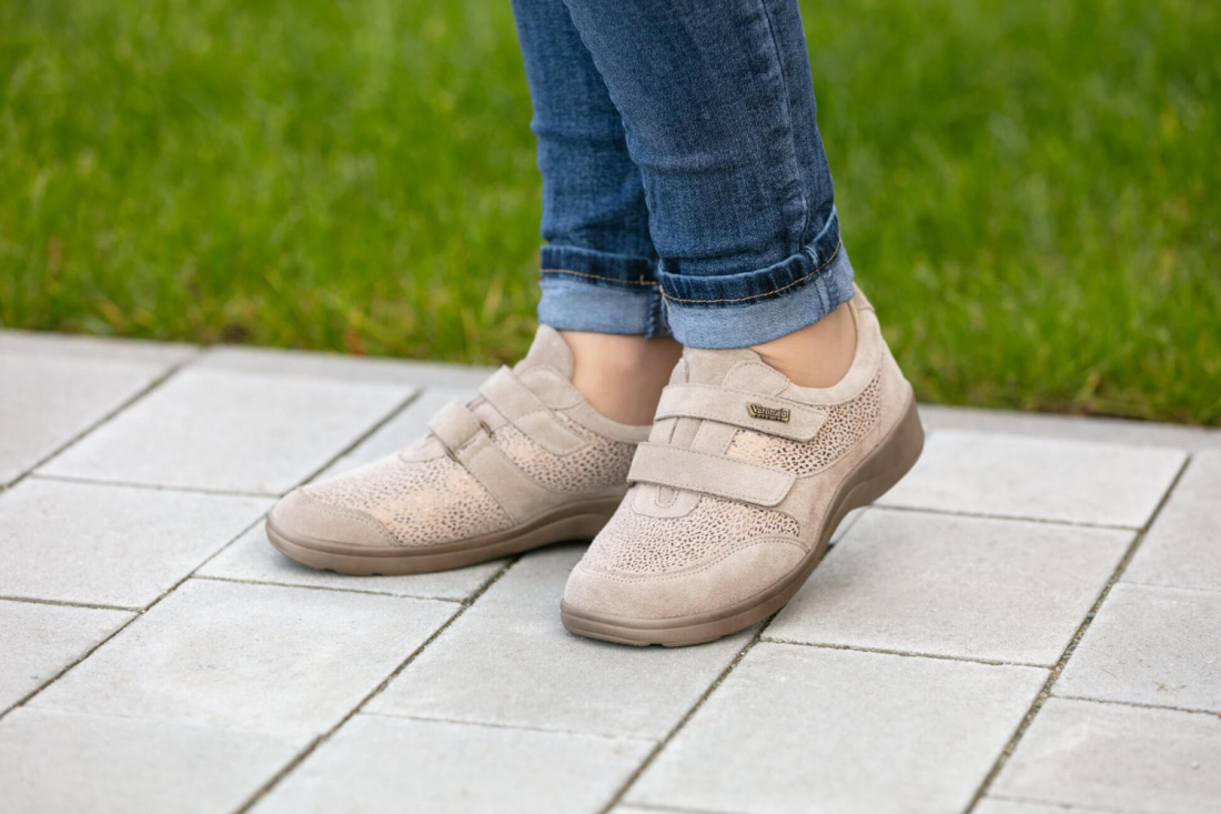 Der Damen Schuhe Varomed Madrid Kiesel in der leichten Überweite H 1/2 sind Gesundheitsschuhe für sensible, schmerzende Füße aus weichem Leder und bieten dank der 2 Klettverschlüsse eine optimale Weitenregulierung. Das Vorderblatt aus Stretch sorgt für eine perfekte Anpassung an Ihren Vorfuß. Mit seiner angepassten Vorfußweite in H 1/2 ist der Varomed Damenschuh hilfreich auch bei ausgeprägtem Hallux Valgus. Varomed Gesundheitsschuhe sind im Innenbereich weitgehends ohne störende Nähte und extra weich gearbeitet und für Diabeteker geeignet. Er schmiegt sich angenehm an Ihren Fuß. Die Schuheinlagen ist wechselbar und er bietet Platz für Ihre individuell angefertigten Schuheinlagen.
