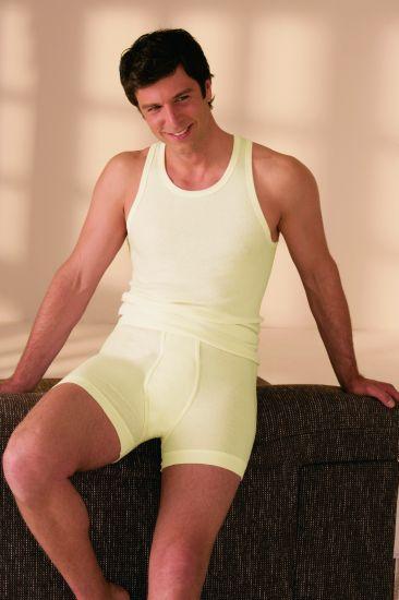 wollweiße Herren Angora Unterhose mit 20 % Angora, kurz, mit Eingriff und Doppelsitz